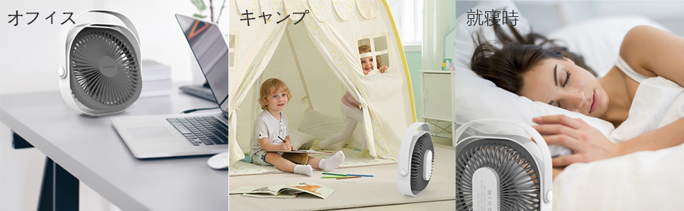 【USB電源&長時間連続使用】:デスクファンはUSB充電式で、パソコン、車載充電器、モバイルバッテリとアダプターなど、いつでもどこでもすばやく充電できます。2000mAhの大容量リチウムイオン電池が内蔵され、長時間連続動作ができます。充電すると同時にも使え、室内でも室外でも使える便利な扇風機です。