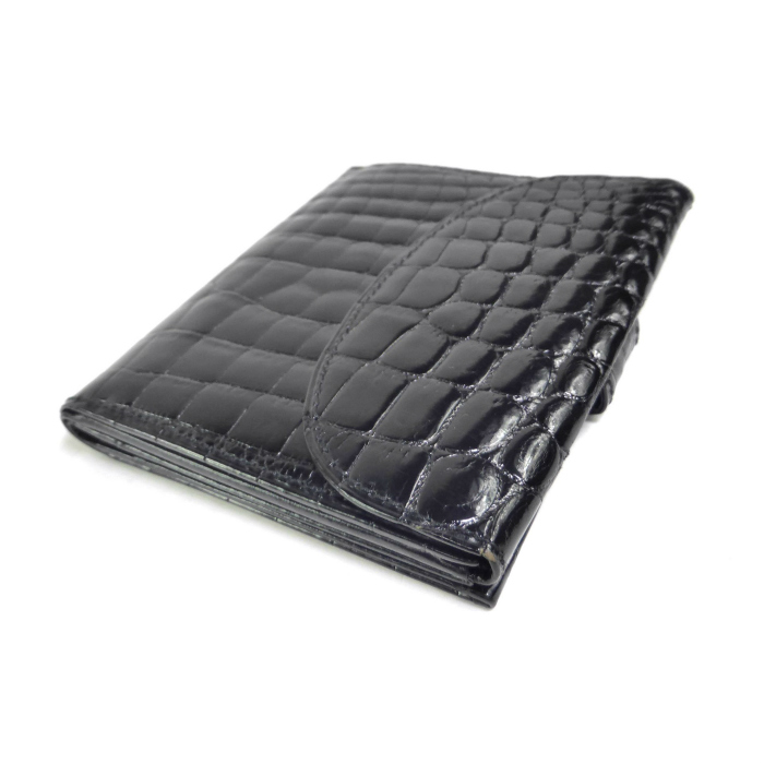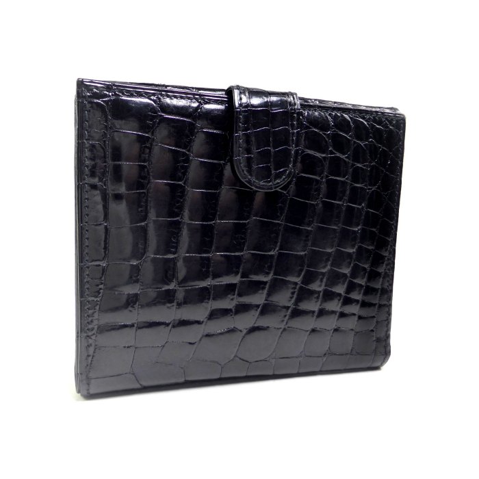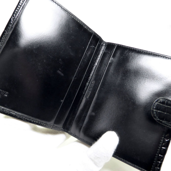 | ロエベ(LOEWE) クロコ型押し スクエア コンパクト ウォレット ダブルフラップ 二つ折り 財布 ブラック(中古) |