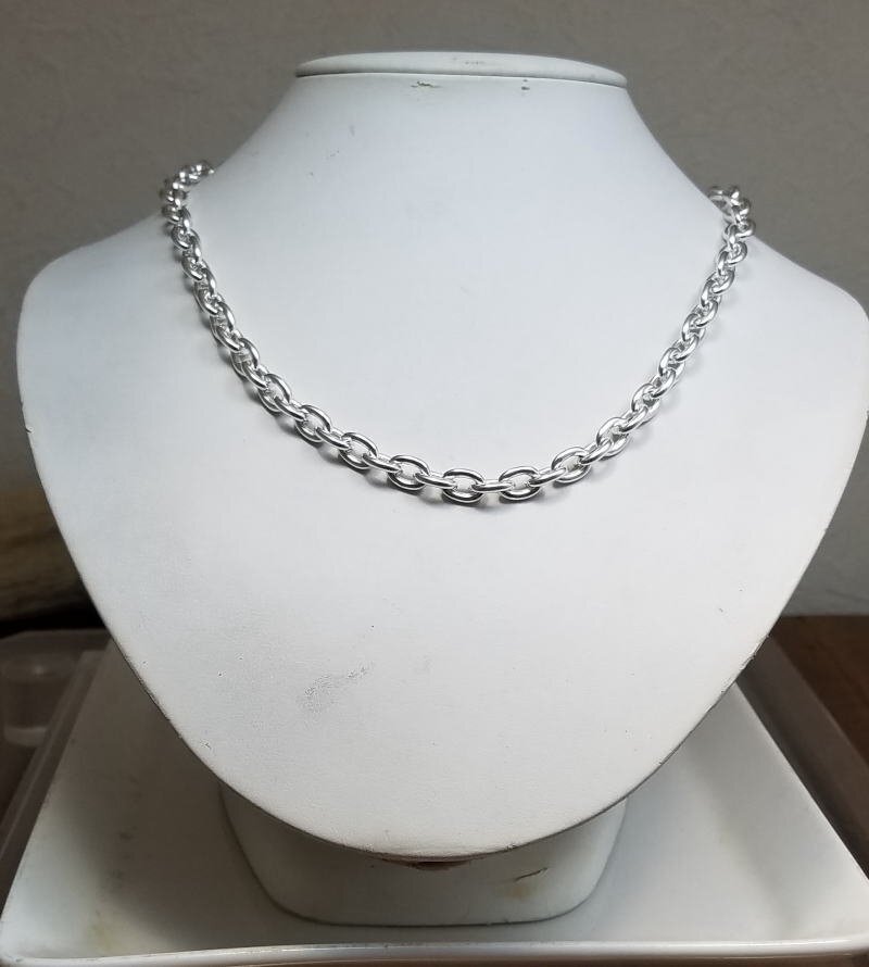 | ◆商品素材 silver925 ◆商品寸法 全長 50cm チェーン幅7.3mm コマの長外径9.9mm コマの短外径7.3mm エンドパーツ: ロブスター(17mm) 重さ目安 57g/50cm 素材 silver925 ◆デザイン紹介 本場ハワイから直輸入したハワイアンジュエリーにぴったりのシルバーネックレスチェーンです。 ハワイアンジュエリー同様、銀特有の白い輝きが首元の存在感を高めます。 細部までまでしっかりと磨きこまれたチェーンは形状や長さなど多数ございます。 写真のネックレススタンドは付属しません。 スタンドにかけているチェーンは45cmのタイプですが首の太さによってチェーンの垂れる位置は異なります 商品やサイズをよくご確認のうえご入札ください |