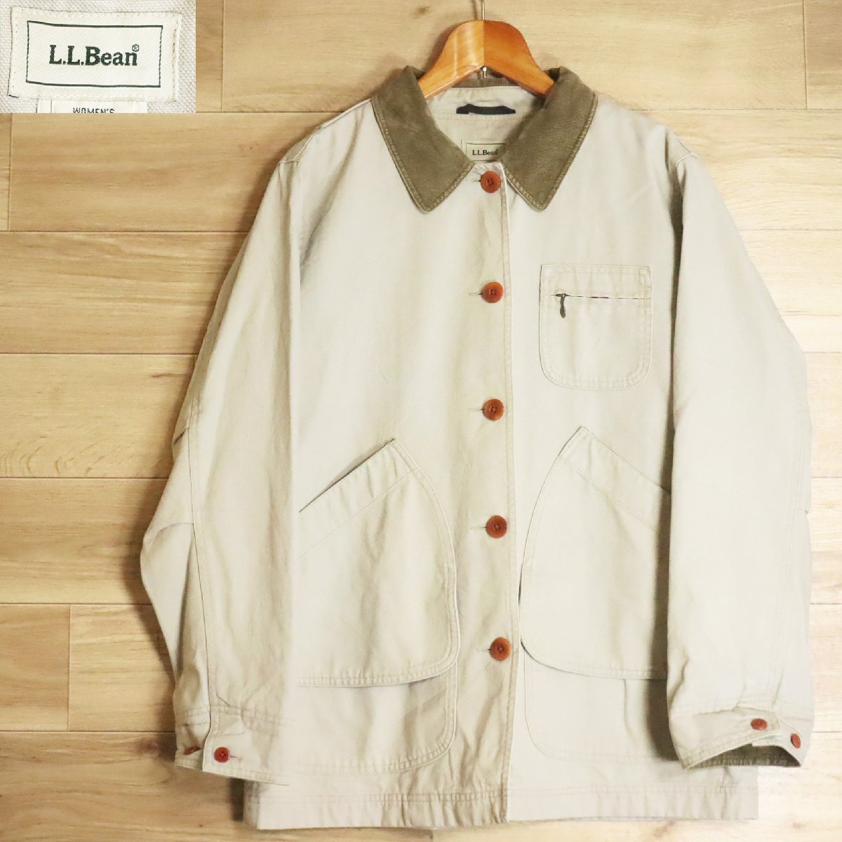 %7R/R5.7-2 L.L.Bean エルエルビーン ハンティングジャケット カバーオール 襟コーデュロイ M レディース アメリカ古着