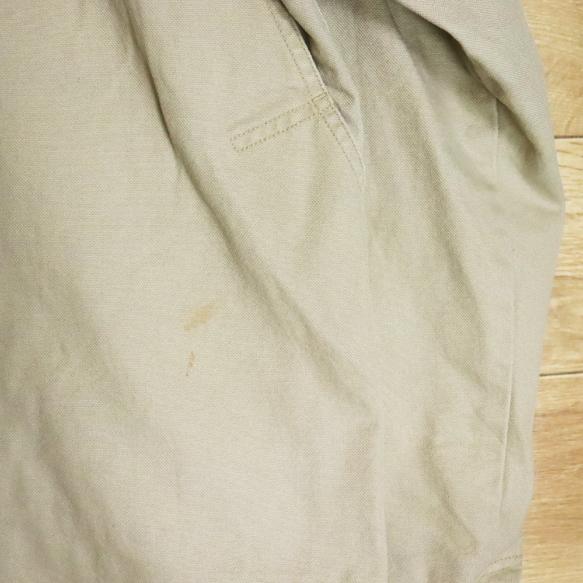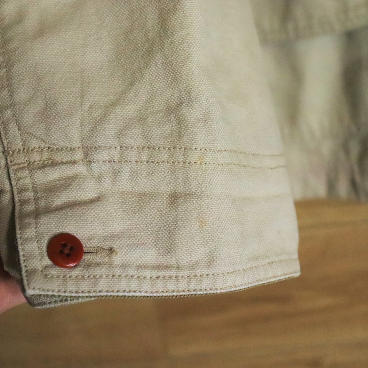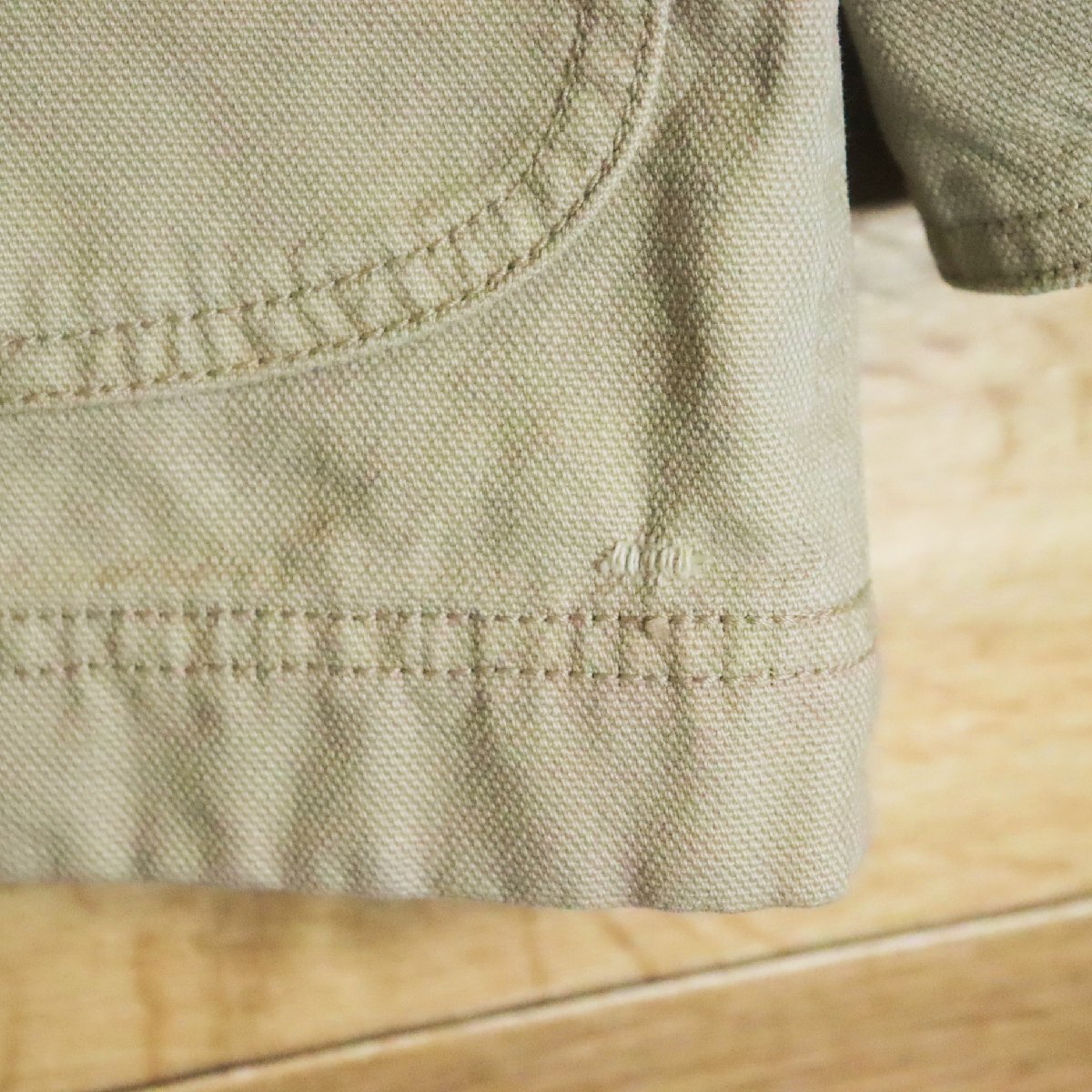 中古品です。使用感があります。袖や胸元、背、裏地に薄汚れ、裾先に小さなホツレ、襟に擦れがあります。