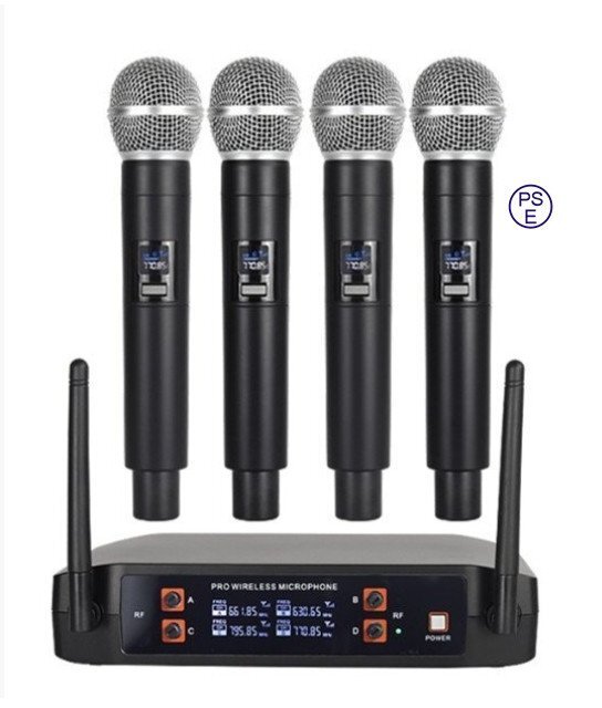 ワイヤレスマイクシステム プロフェッショナル UHF 4CH カラオケ 会議室 パーティー マイクスタジオ 4本のマイクロフォン付きです