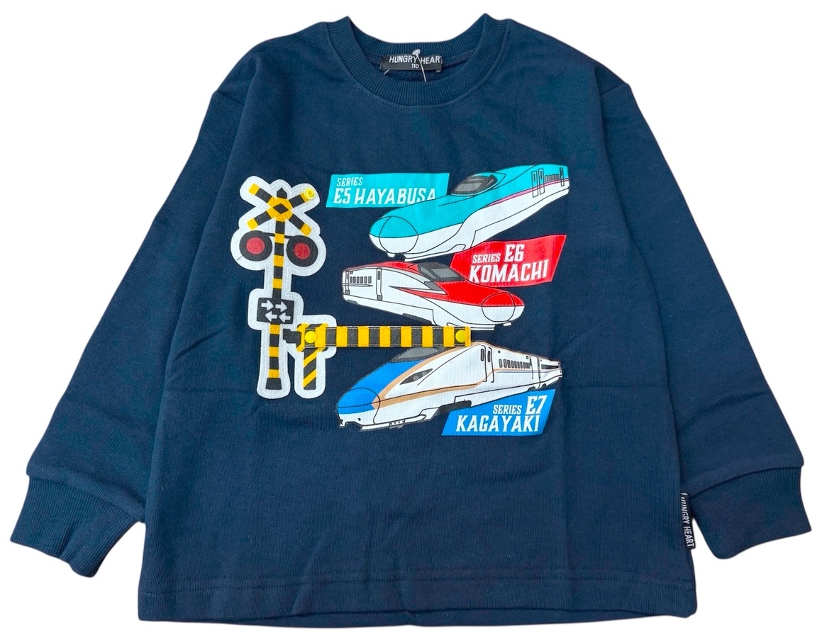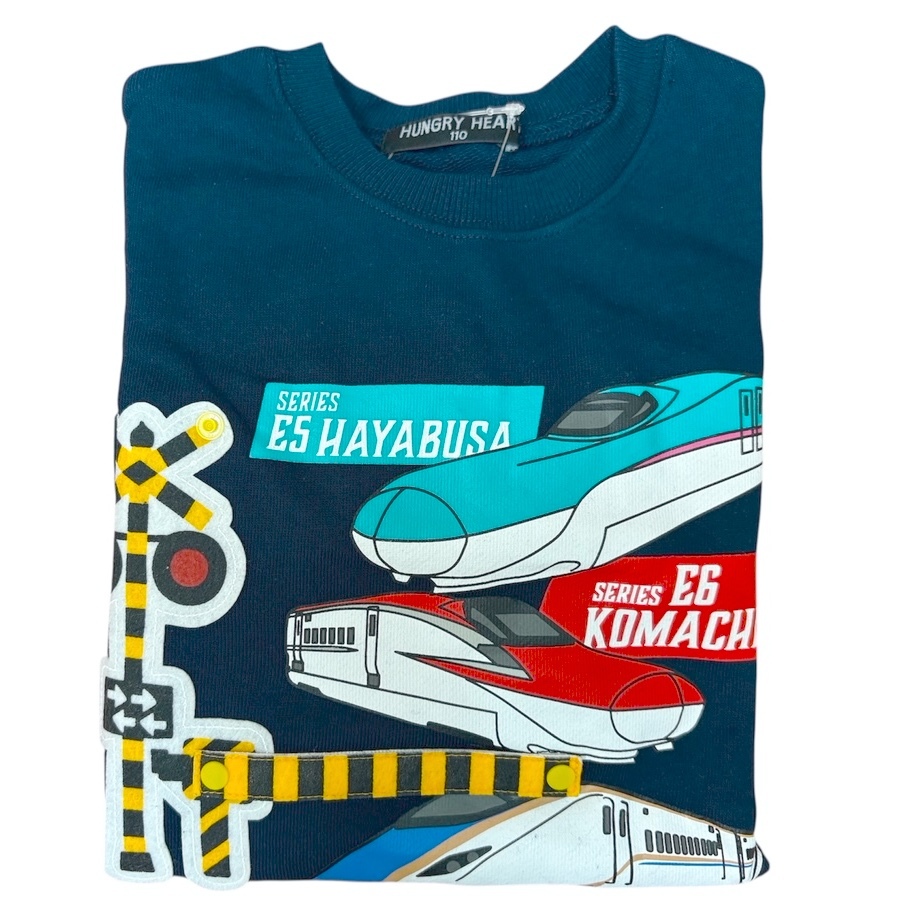 新作 新品タグ付 ハングリーハート★JR 新幹線★はやぶさ コマチ かがやき★仕掛け 電車柄 裏毛トレーナー★子供 120cm 7-8才 ¥3740