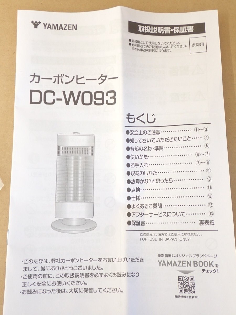 遠赤外線カーボンヒーター 900W 速暖 D.C-W.093-W