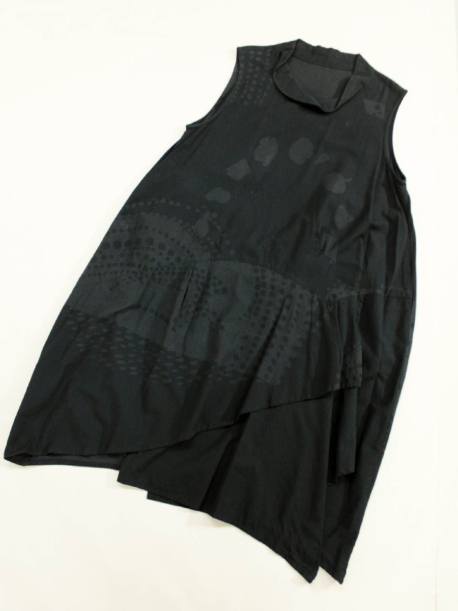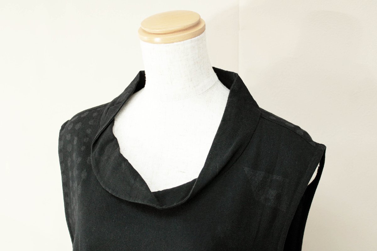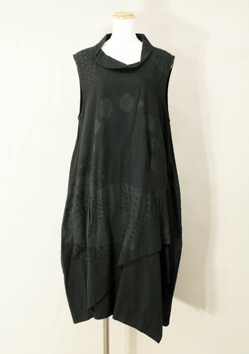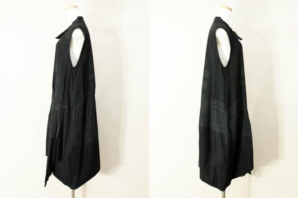 慈雨センソユニコ/コットンジャガード変形ロングチュニックベスト/ジャンパースカート:40/黒系yx831