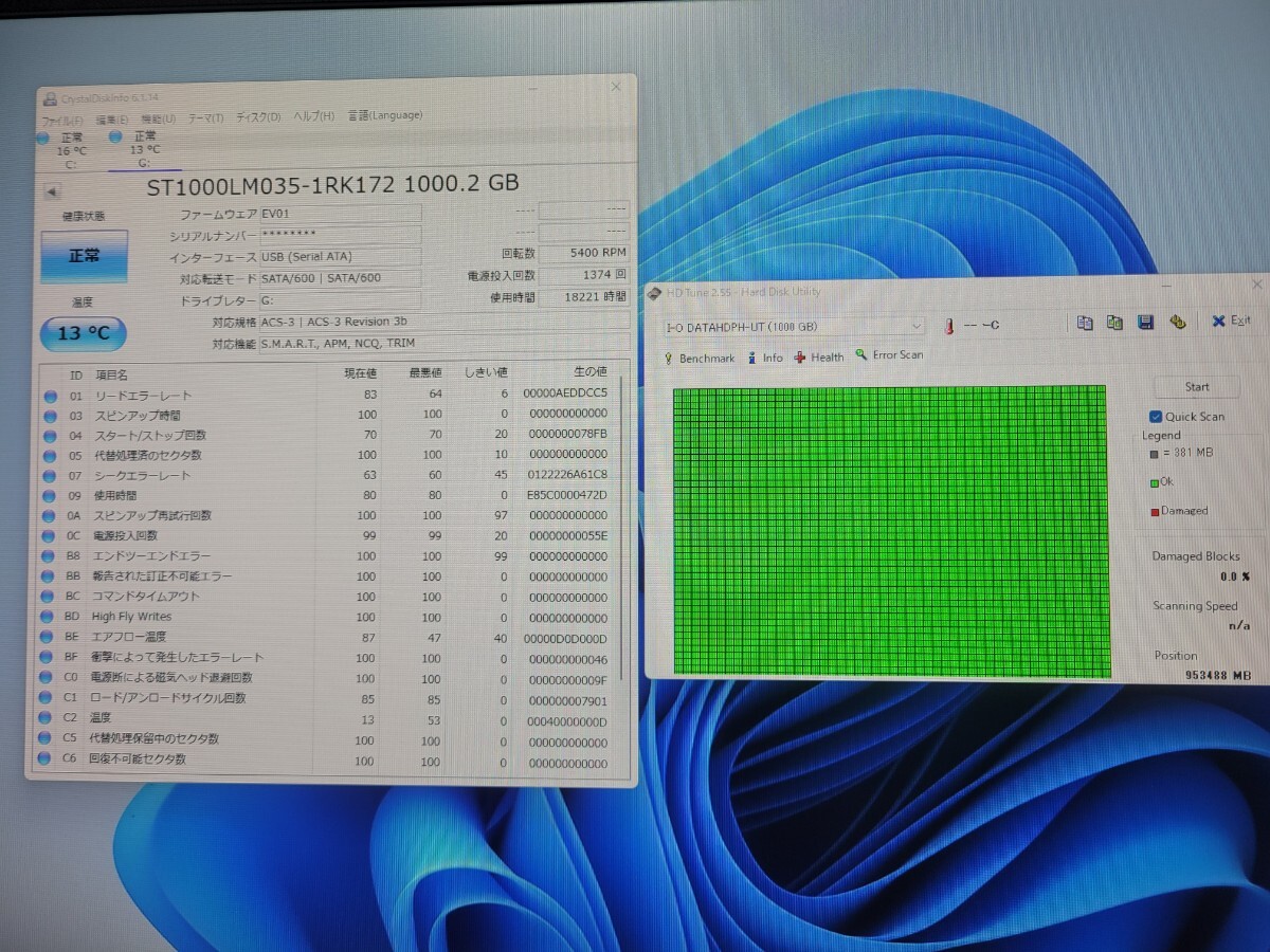 CrystalDiskInfoとHD Tuneにて簡易確認しております。