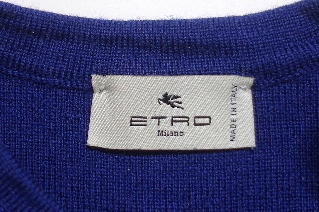 21SS 良品 ETRO エトロ シルクスカーフ柄切替 半袖 ニット セーター ネイビー ウール レディース 38