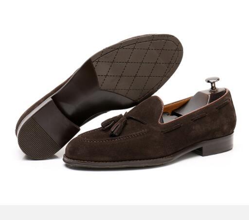 上質最上級 スエード革 メンズ ビジネスシューズ タッセルローファー 職人手塗り上げ 本革 レザーシューズ 牛革 革靴 珈琲色 26.5cm