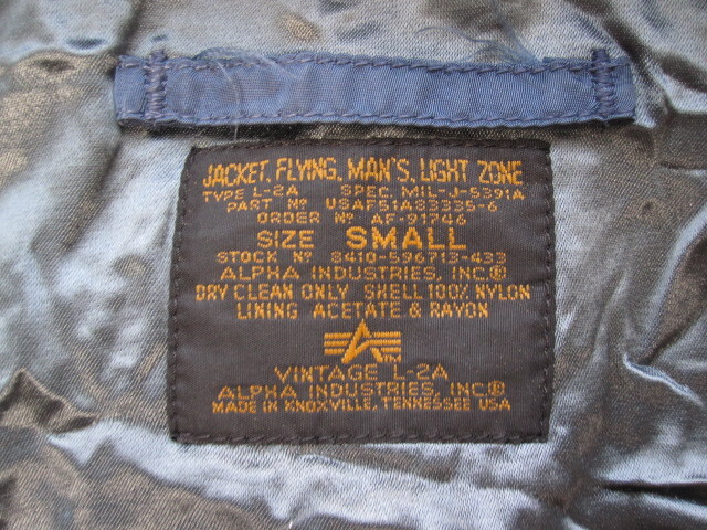 ALPHA アルファ L-2A フライトジャケット IDEAL ZIP サイズS USED 古着 軍物