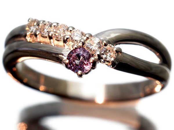 脇石には美しい透明感放つ良質な天然ダイヤモンドをお洒落にセッティングし、キラキラと上品な輝きを放ち、高級感を惹きたてています!