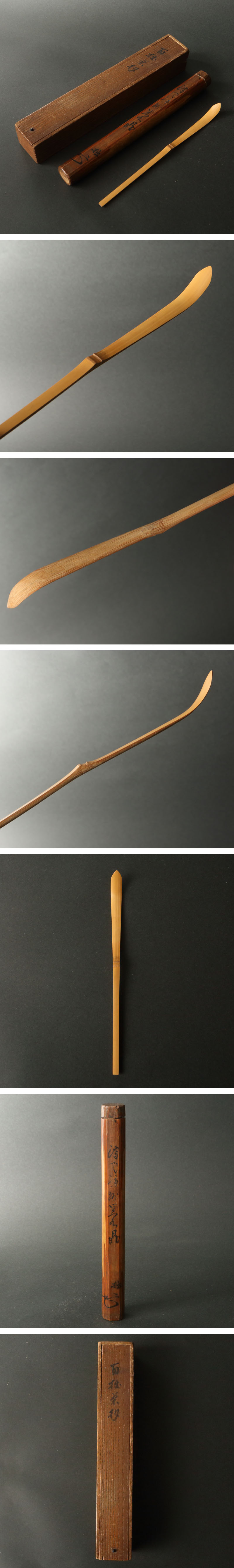 委託HK◇百拙元養 竹茶杓 共筒(茶道具 竹工芸 竹細工 茶器 茶入 棗 薄茶 濃茶 黄檗宗 僧 中節 茶事 茶席 茶の湯 時代物)