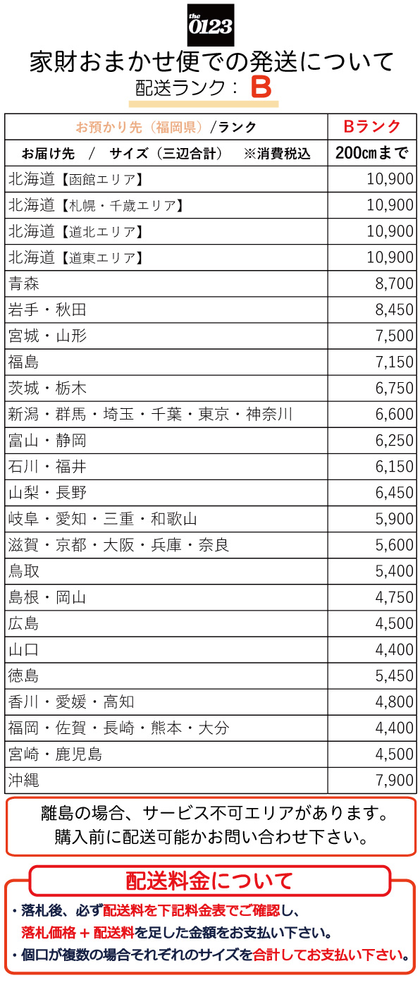 配送料金は上記料金表をご確認ください。