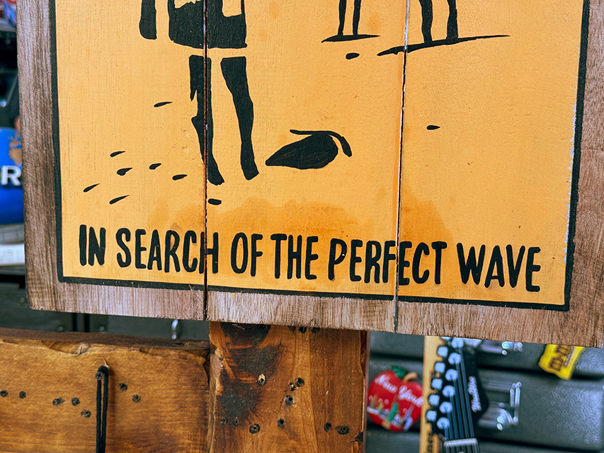 英語で書かれたコピー、“IN SEARCH OF THE PERFECT WAVE”(最高の波を探して)
