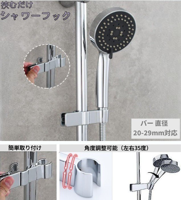 【VAPS_1】挟むだけ シャワーフック スライドバー 簡単取付 角度調整 左右35度 シンプル シャワーヘッドホルダー お風呂 送込