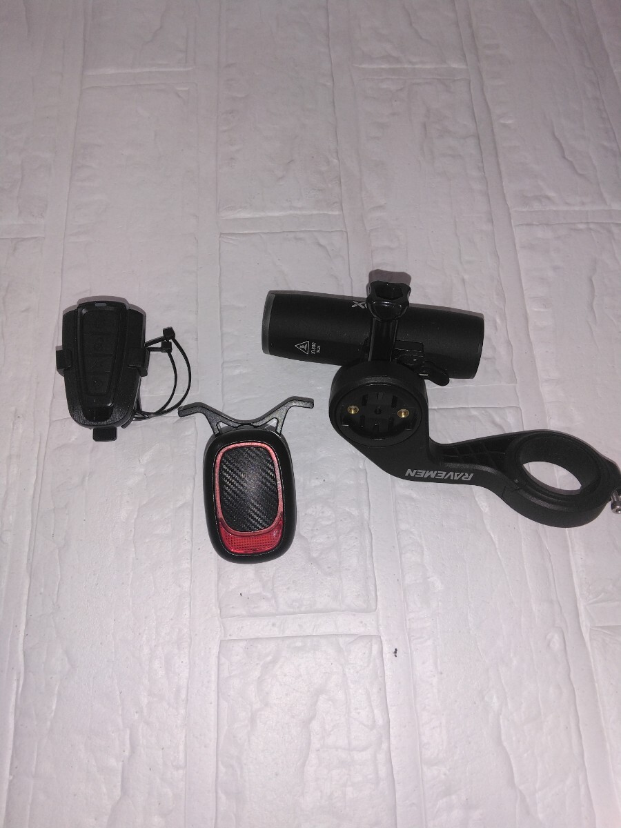 XOSSヘッド、テールライト USB充電式サイクリングリアライト LEDテール、リモコン 多重照明モード 警告 サイレン付きです。買ったは良いが別の品物に代えたので不要になりました。ロードバイクに最適。