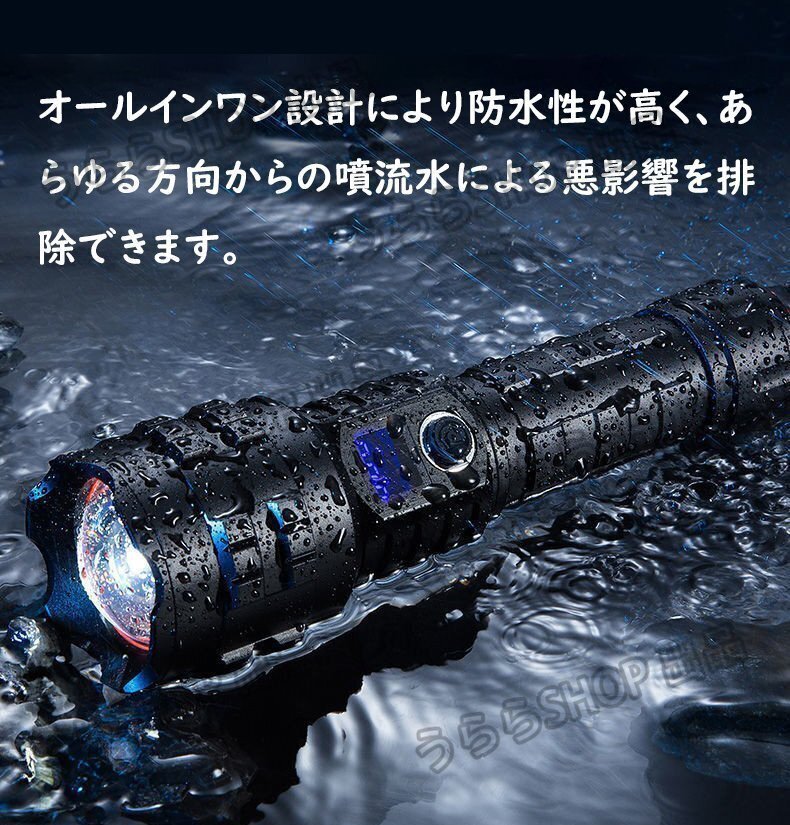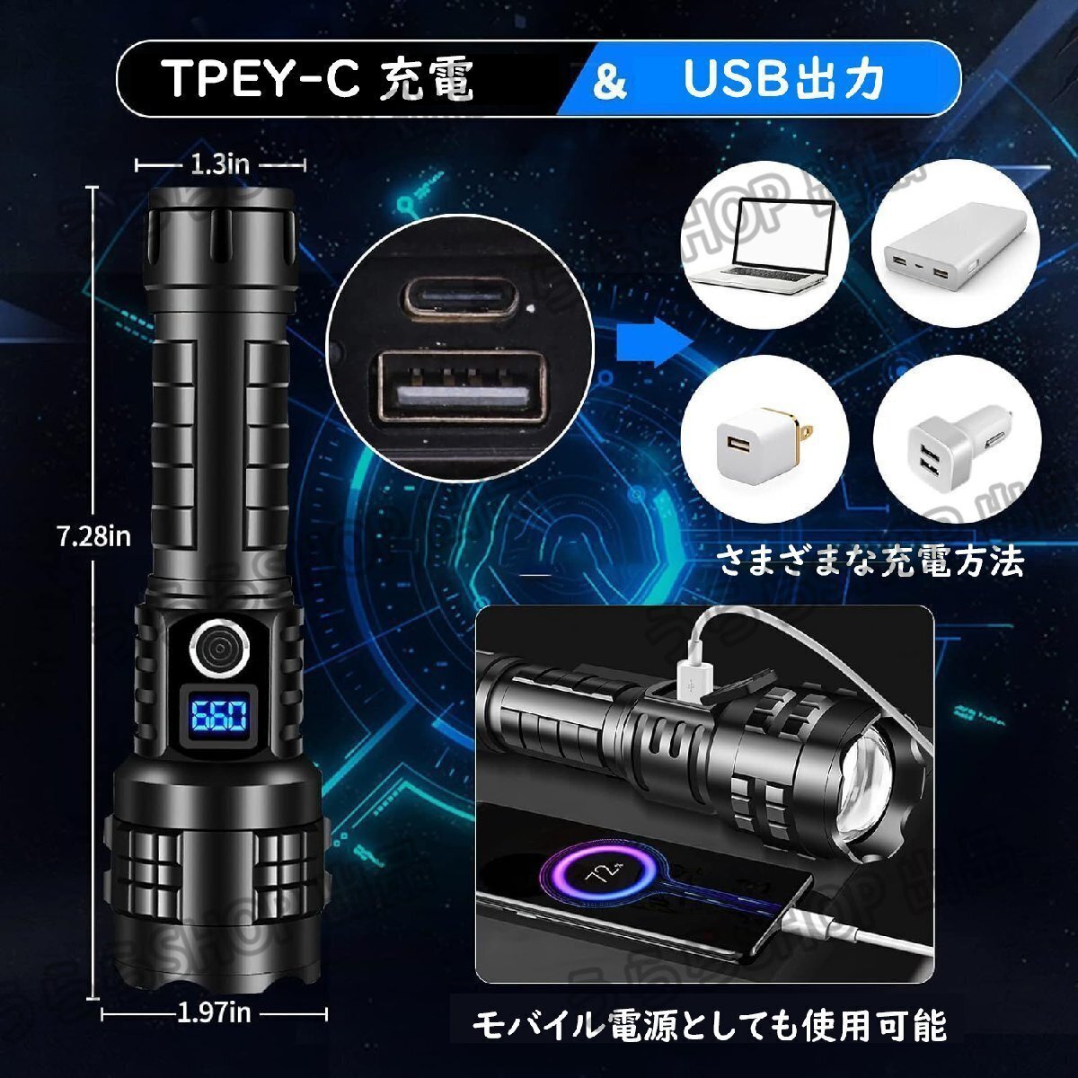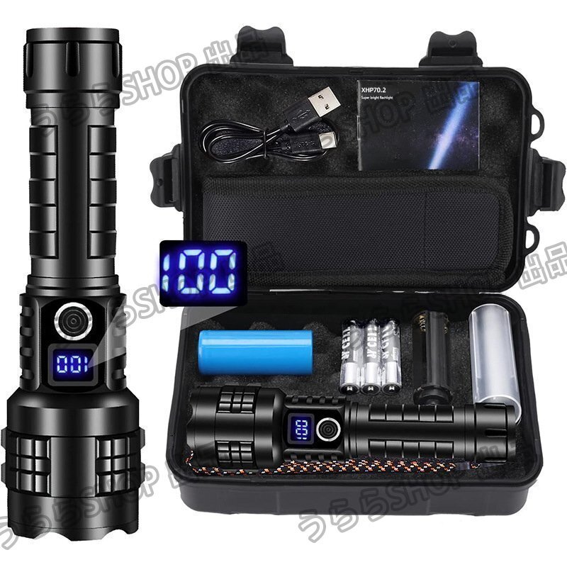 【新品未使用】 LED懐中電灯 50000ルーメン フラッシュライト Type-C充電 5段調光 充電式 懐中電灯 軍用 最強 XHP70 登山/防災 xhw0175