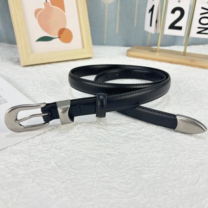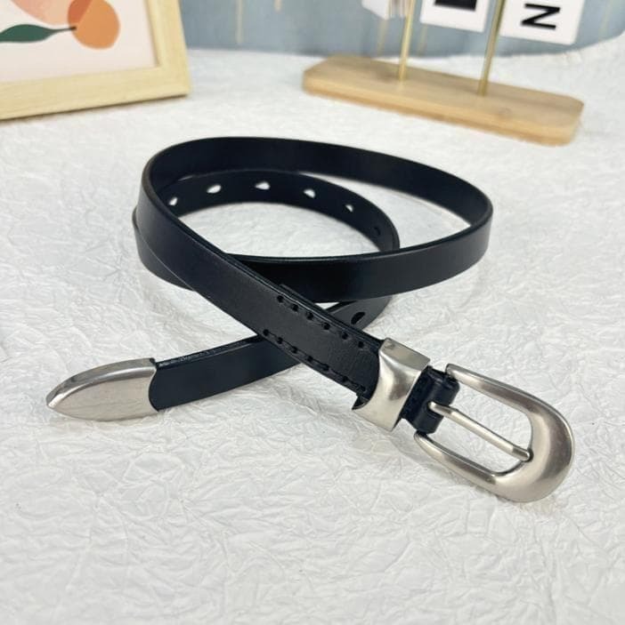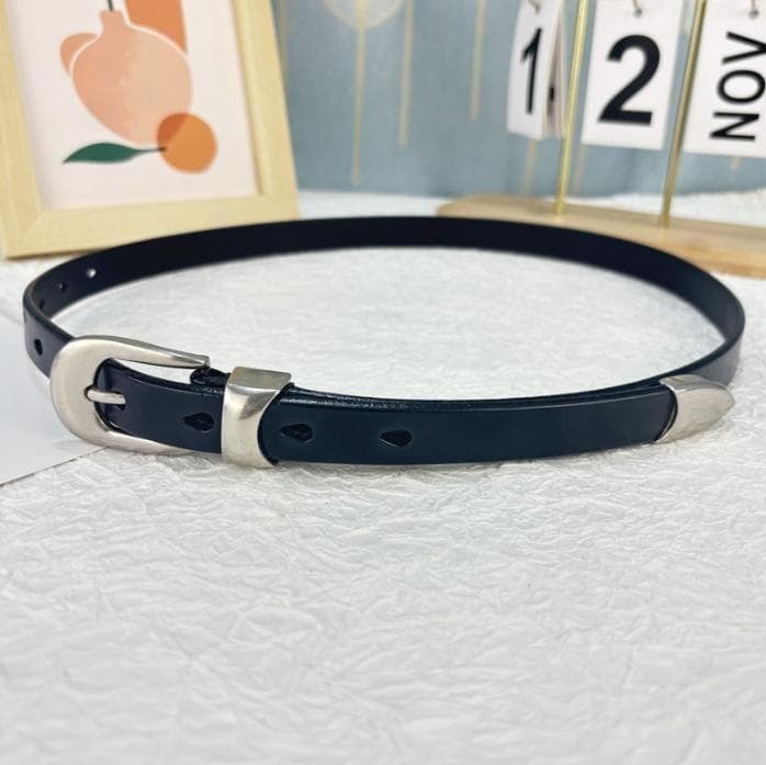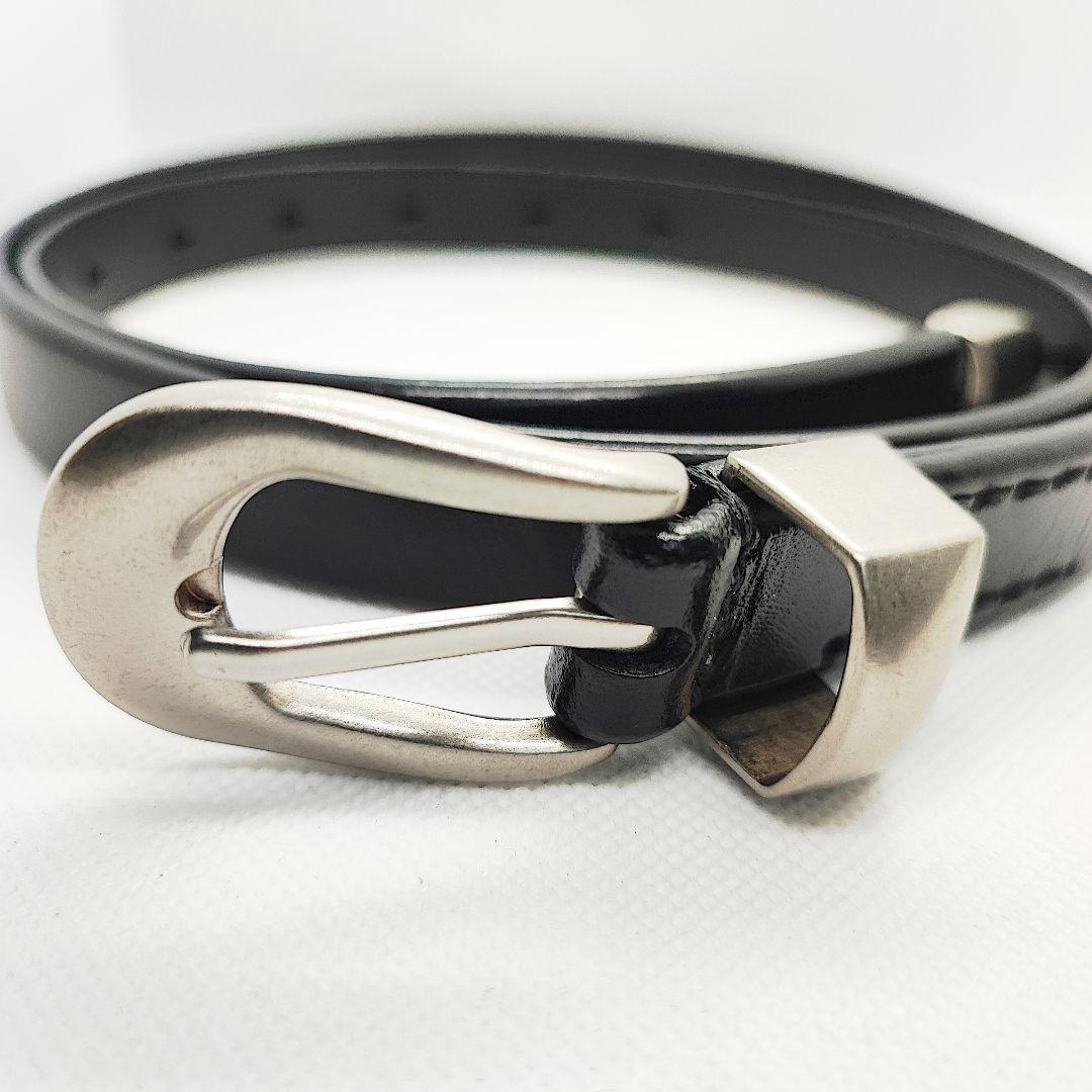 本革(牛革)ナローウエスタンべルト ブラック×シルバー
