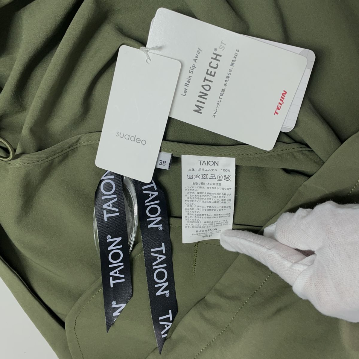◆美品◆ suadeo TAION スアデオ タイオン 撥水 ストレッチ ゆったり マウンテンパーカー フーディー コート カーキ レディース 38 2245L□