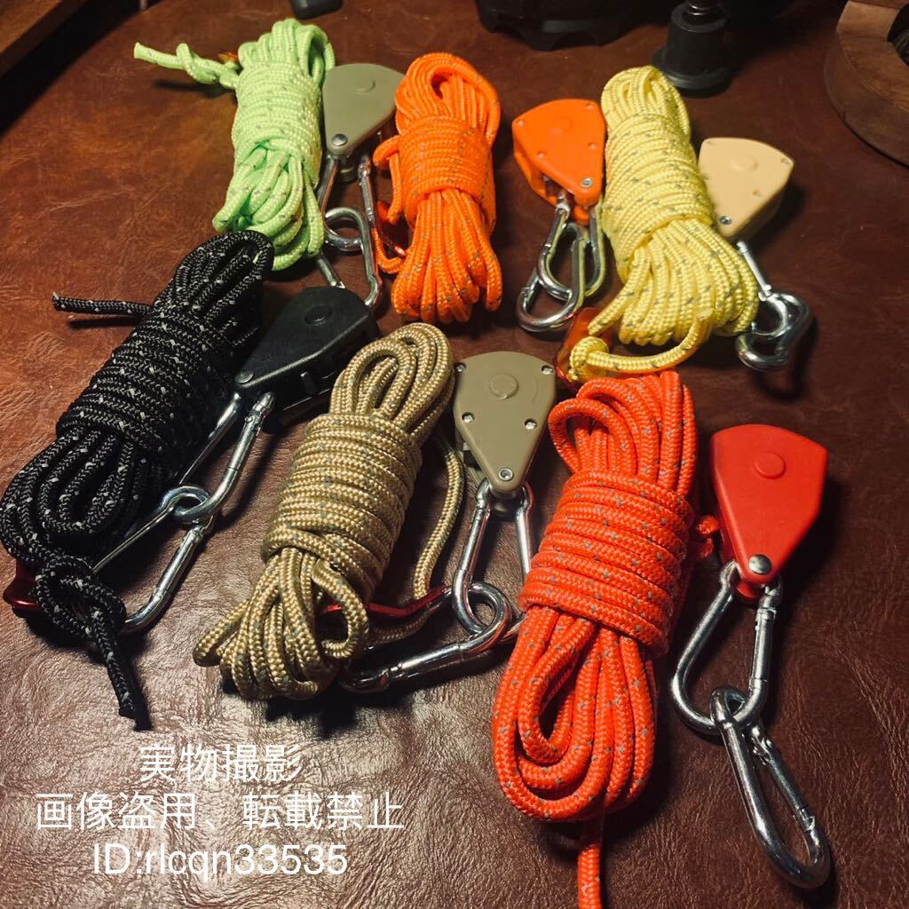 新品キャンプ用 超高品質 タープテント4mmロープ パラコード ガイロープ カラビナ 6点セット 反射材入り 長4m 簡単設営 アウトドア野外登山