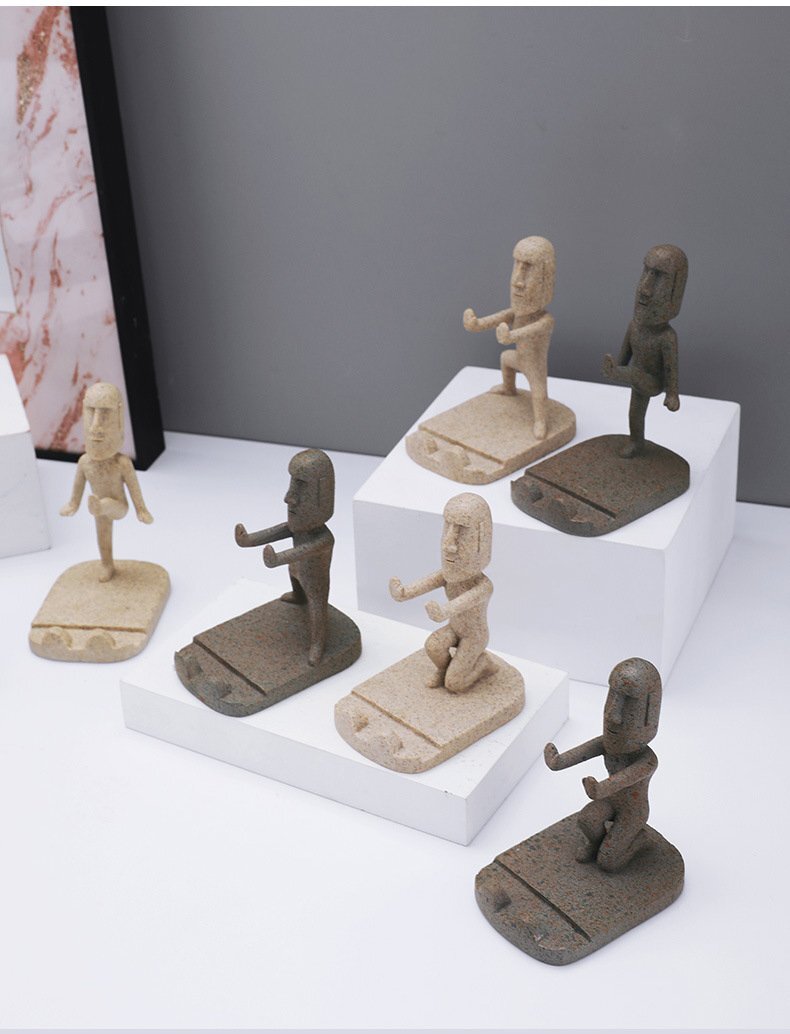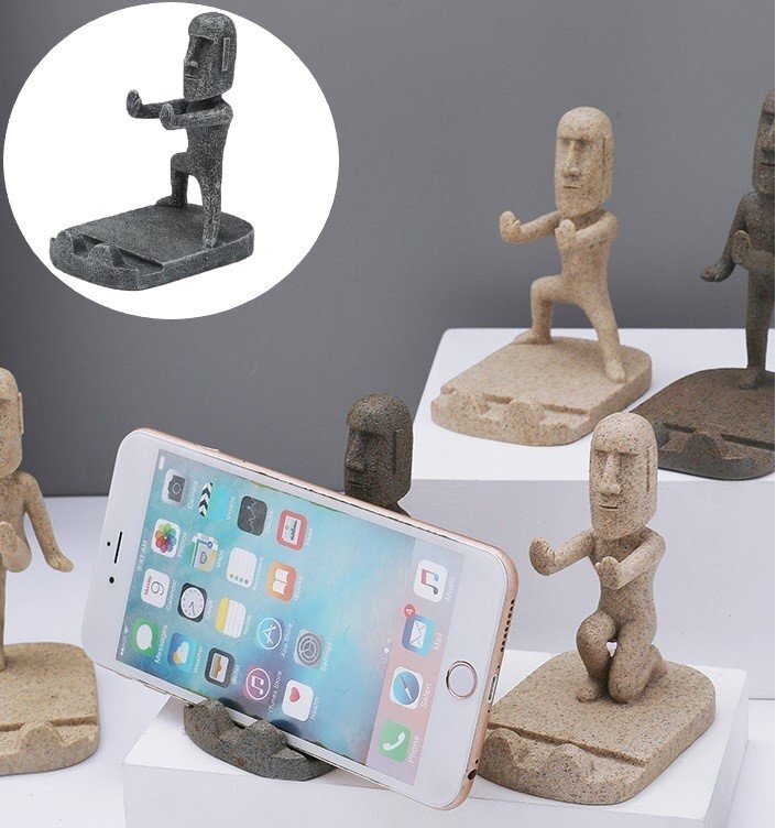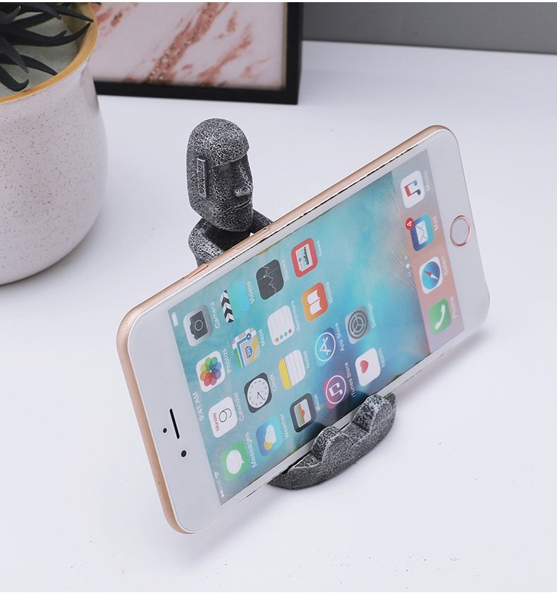 キュートな モアイ像 グレー タイプC 立って支える モアイ スマホスタンド オブジェ インテリア n929