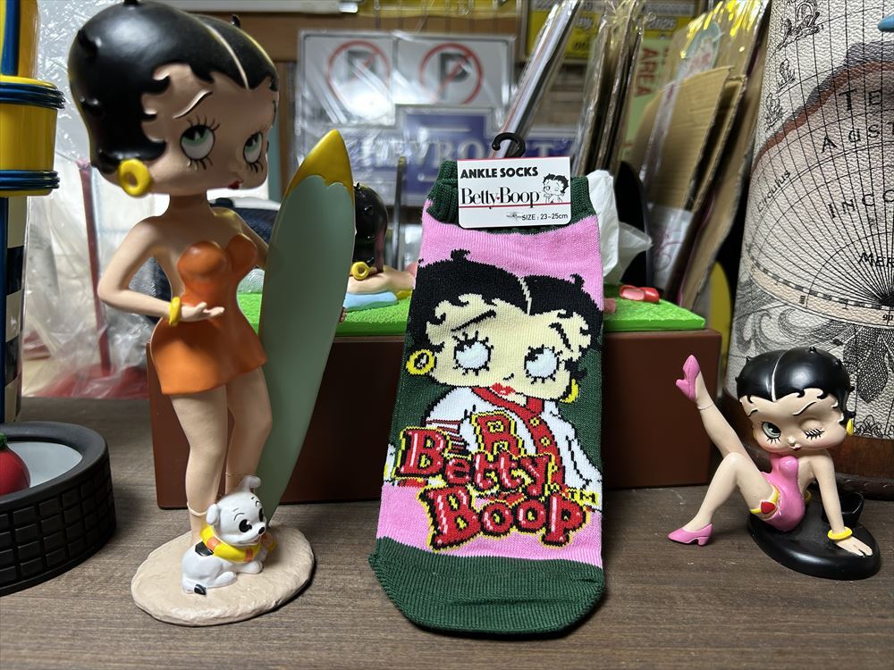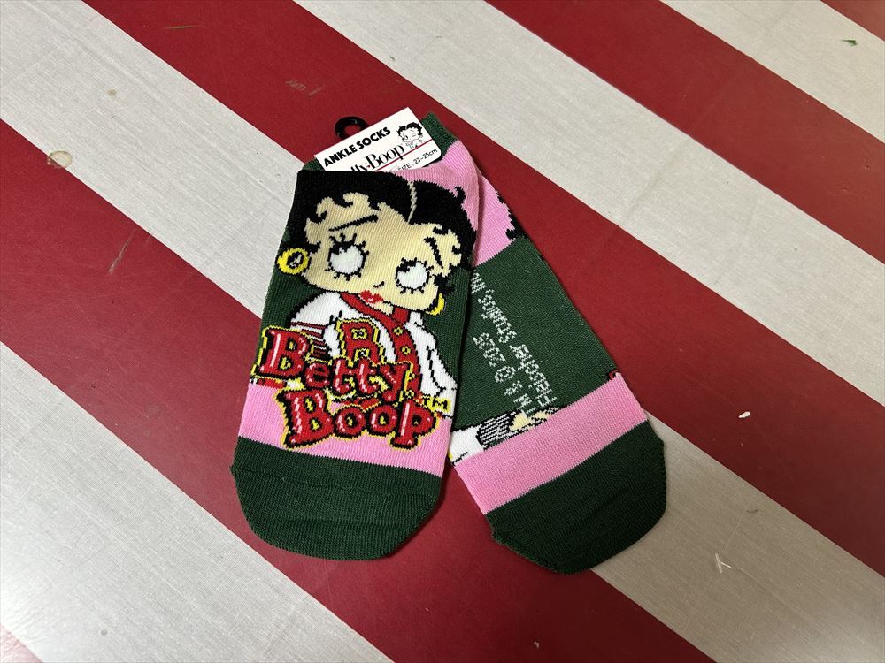 【214201】超人気のアメリカン雑貨のキャラクター!!!!ベティブープのアイテム レディースのアンクルソックスです。アンクルソックス・・くるぶしあたりまでの短めのソックス、正面にドーンとべティが描かれていて、靴を脱いだら目立つの間違い無し サイズ23~25cm 素材 ポリエステル,ポリウレタン