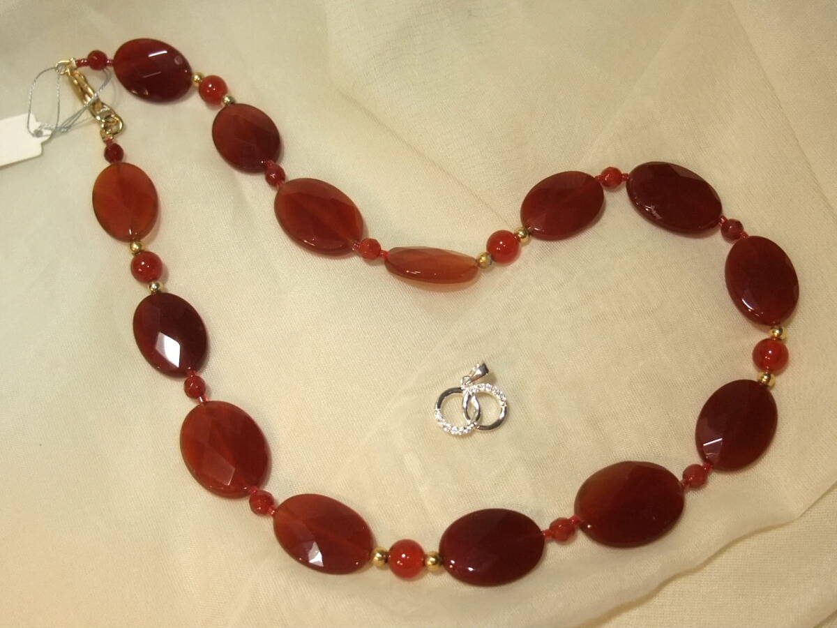 高品質silver銀製チャーム 赤瑪瑙 パワーストーン 赤メノウ 天然石ネックレス☆レトロヴィンテージ未使用品 b293