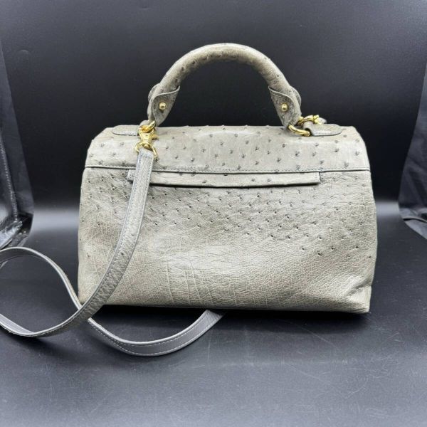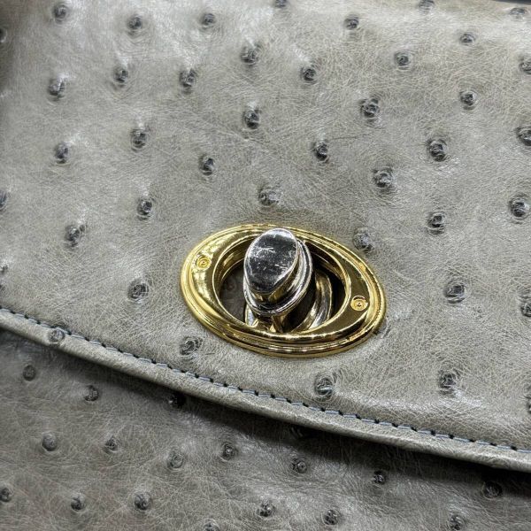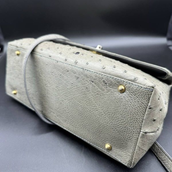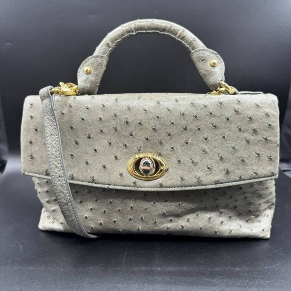 N) ◎オーストリッチ レザー◎ ハンドバッグ ショルダーバッグ 2WAY ダチョウ カーキ グレー ゴールド金具 レディース 鞄 カバン NR0115