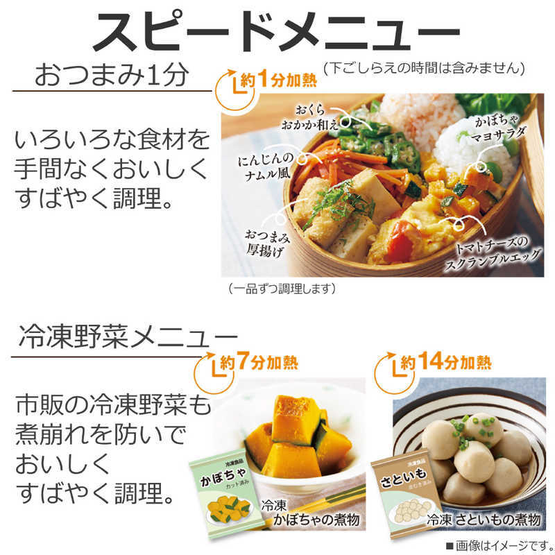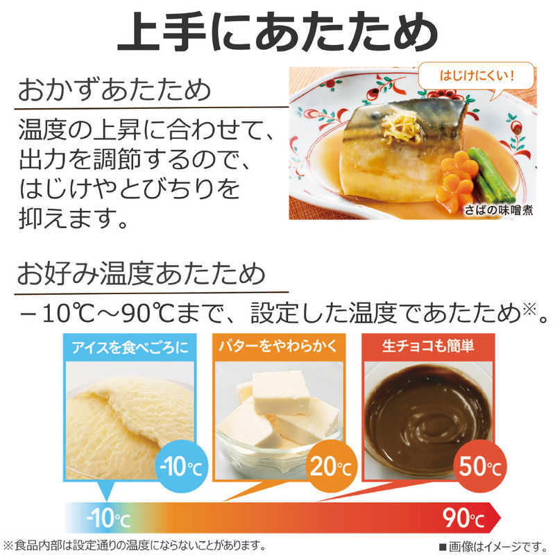 2つのセンサー(赤外線センサー+温度センサー)で庫内を検知、東芝だけの制御で「ごはん」「おかず」あたためます。