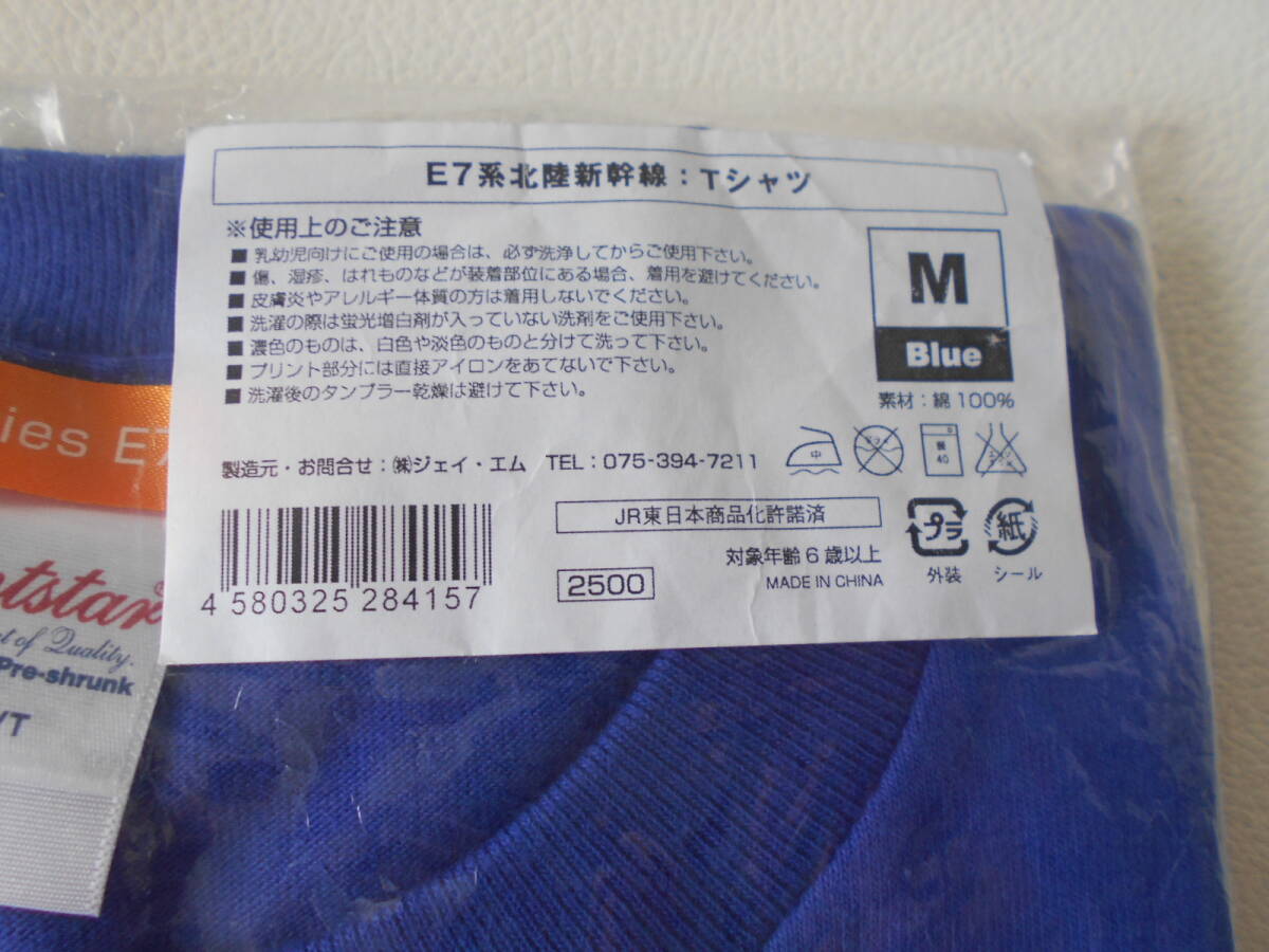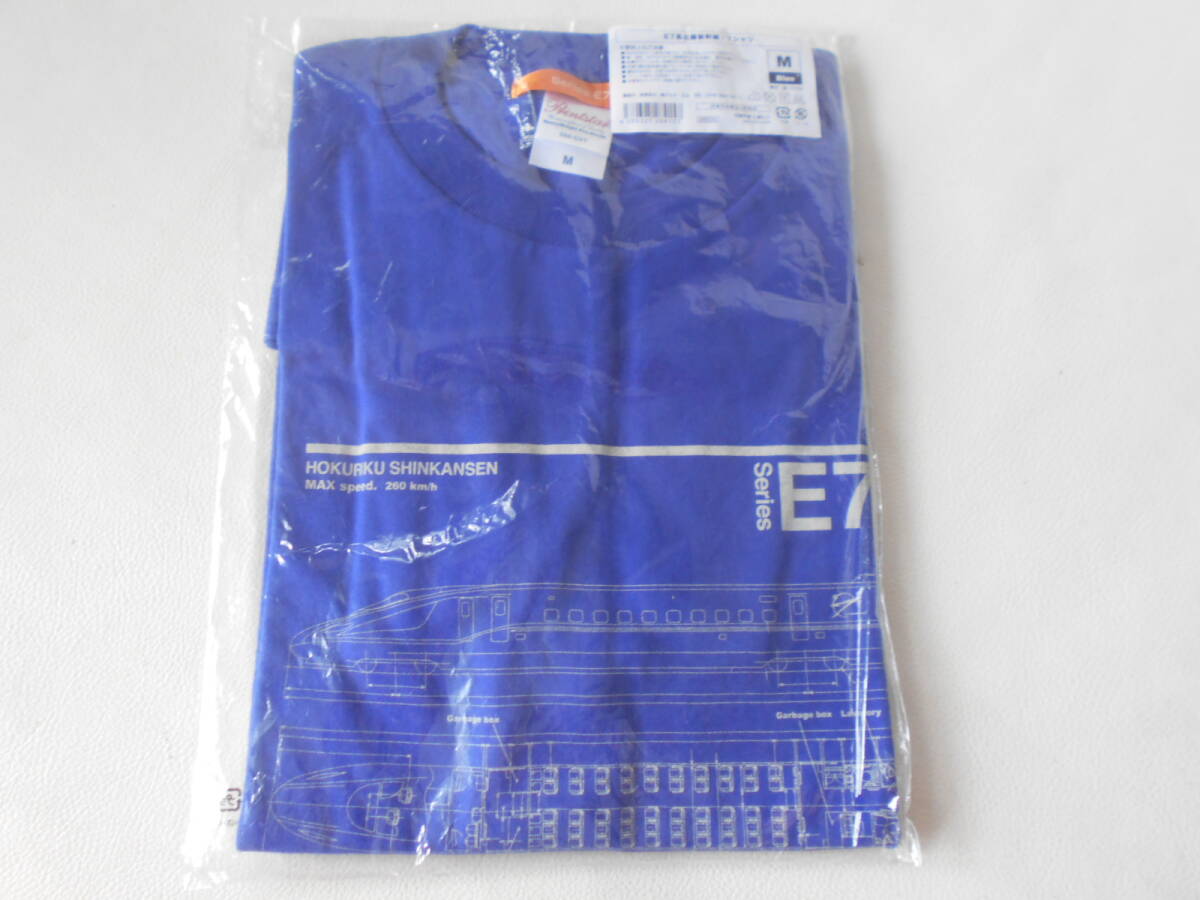 ジェイ・エム 鉄道グッズ E7系 北陸新幹線 Tシャツ Mサイズ ブルー 半袖 未使用自宅保管品