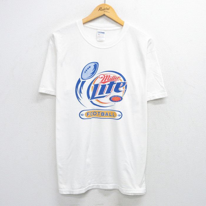 【商品名】 XL★古着 半袖 ビンテージ Tシャツ メンズ 00年代 00s ミラーライト ビール フットボール コットン クルーネック 白
