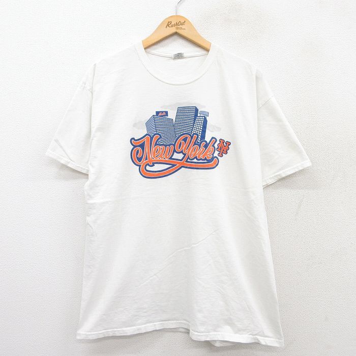 【商品名】 XL★古着 フルーツオブザルーム 半袖 Tシャツ メンズ MLB ニューヨークメッツ PREMIO コットン クルーネック 白 メジャーリーグ ベースボール 野球