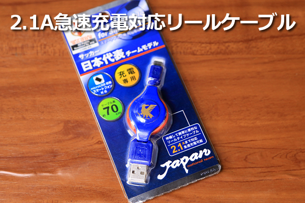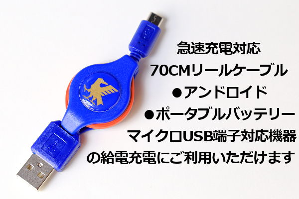 スマホ充電コード Android対応 2A電流急速充電リールケーブル |