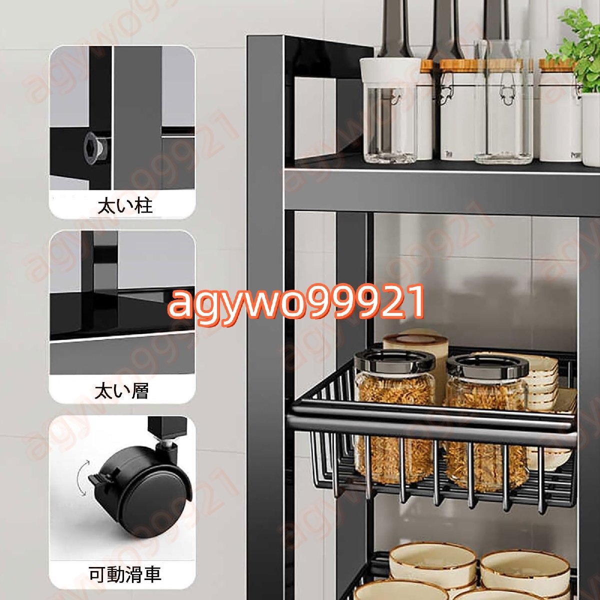 【調整可能な層間隔】:キッチンラックの収納棚は取り外し可能で、必要に応じて適切な高さに調整できます。さまざまなサイズの電化製品を同時に収容でき、混雑を心配することなく十分なスペースを提供します。