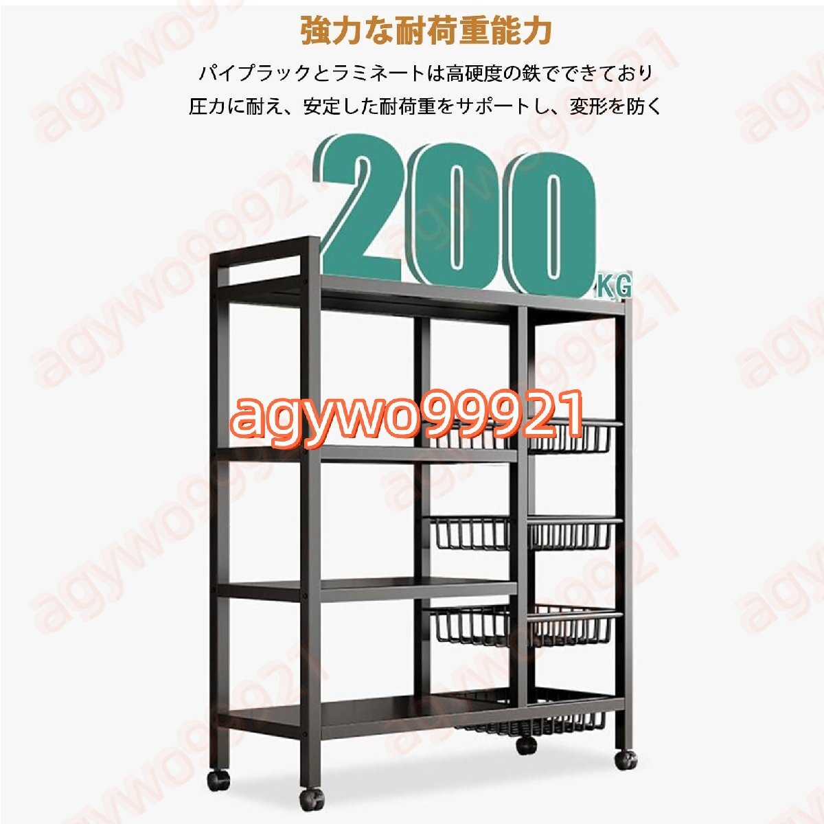 キッチンラック 棚 キャスター付き 用多段収納棚 オープンシェルフ ラック 長さ80/90/120cm 多目的棚 耐摩耗性があり拭き取りやすい 高耐荷重200kg おしゃれ 組み立て簡単 省スペース 大容量 キッチン リビング(長さ90cm)