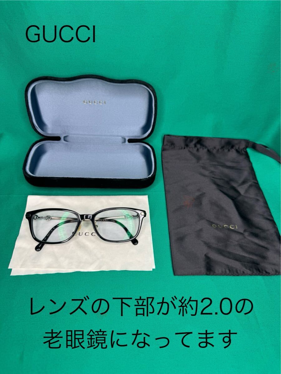 GUCCI グッチの眼鏡、アイウェアで薄目のブルーレンズにレンズ下部が老眼鏡になっています。