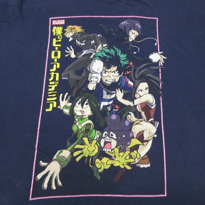 【商品名】 XL★古着 半袖 Tシャツ メンズ アニメ 僕のヒーローアカデミア 大きいサイズ コットン クルーネック 紺