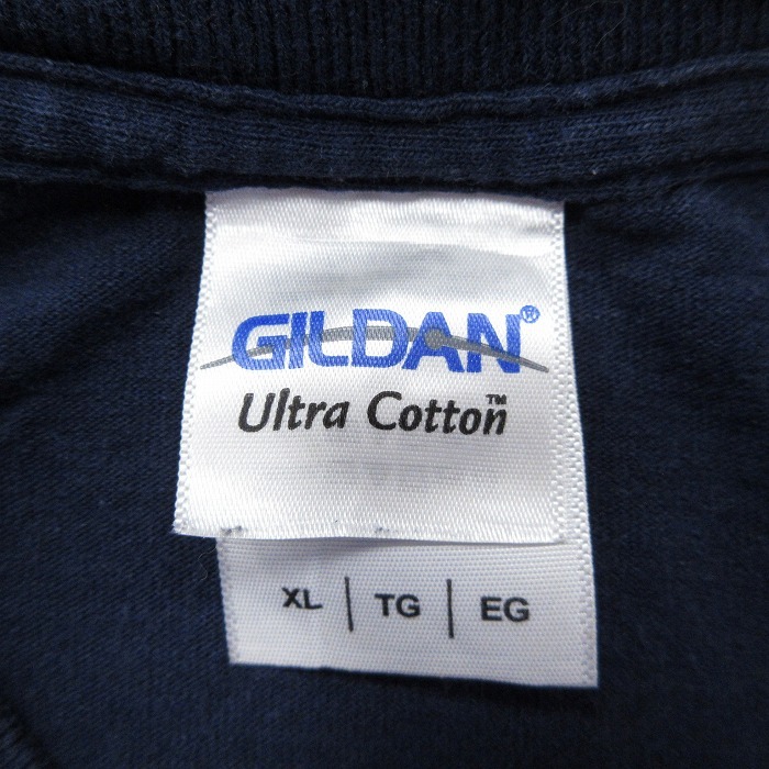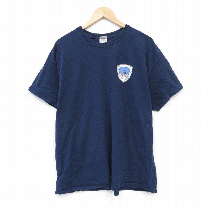【商品名】 XL★古着 半袖 Tシャツ メンズ メッセージ コットン クルーネック 紺