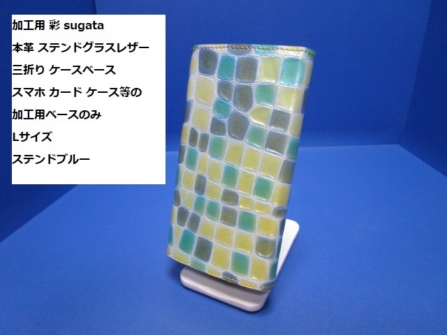 加工用 彩 sugata 本革 ステンドグラスレザー 三折り ケースベース スマホ カード ケース等の加工用ベースのみ Lサイズ ステンドブルー ★