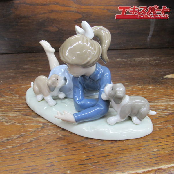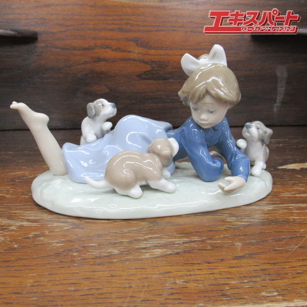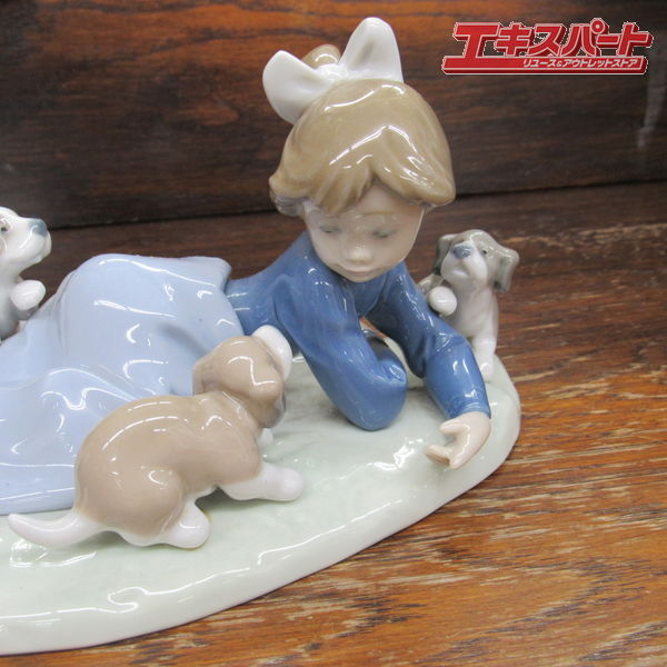 極美品 Liadro リヤドロ 陶器人形 みんなで遊びましょう 仔犬 少女 辻堂店