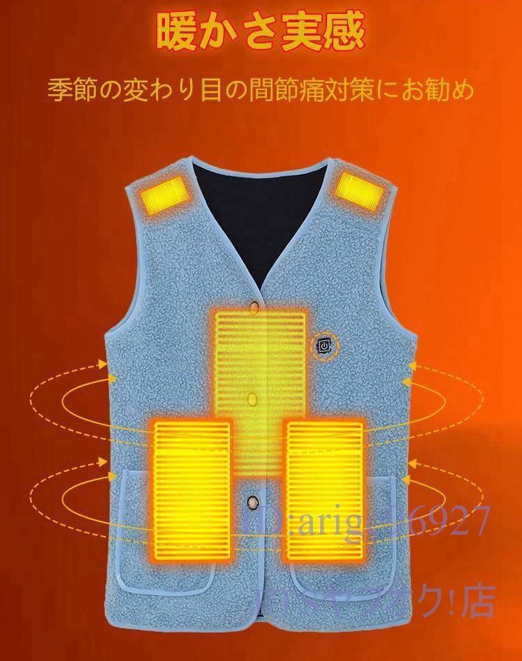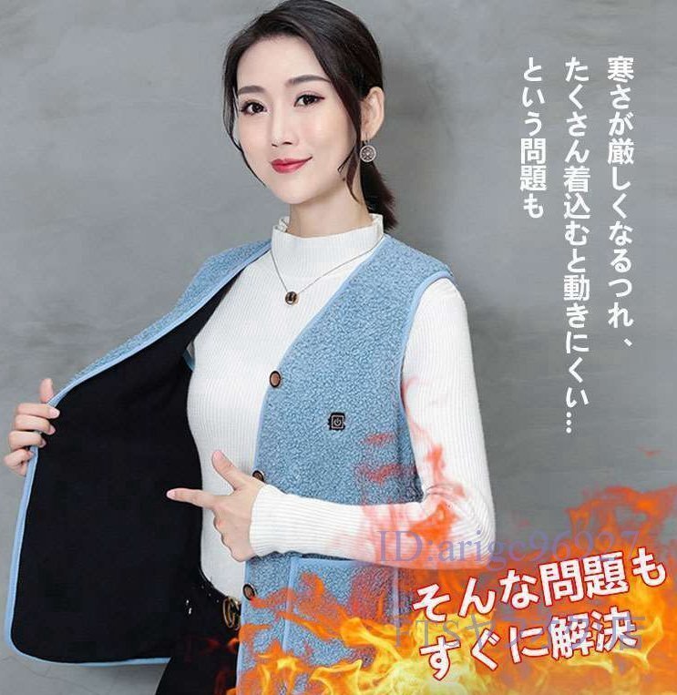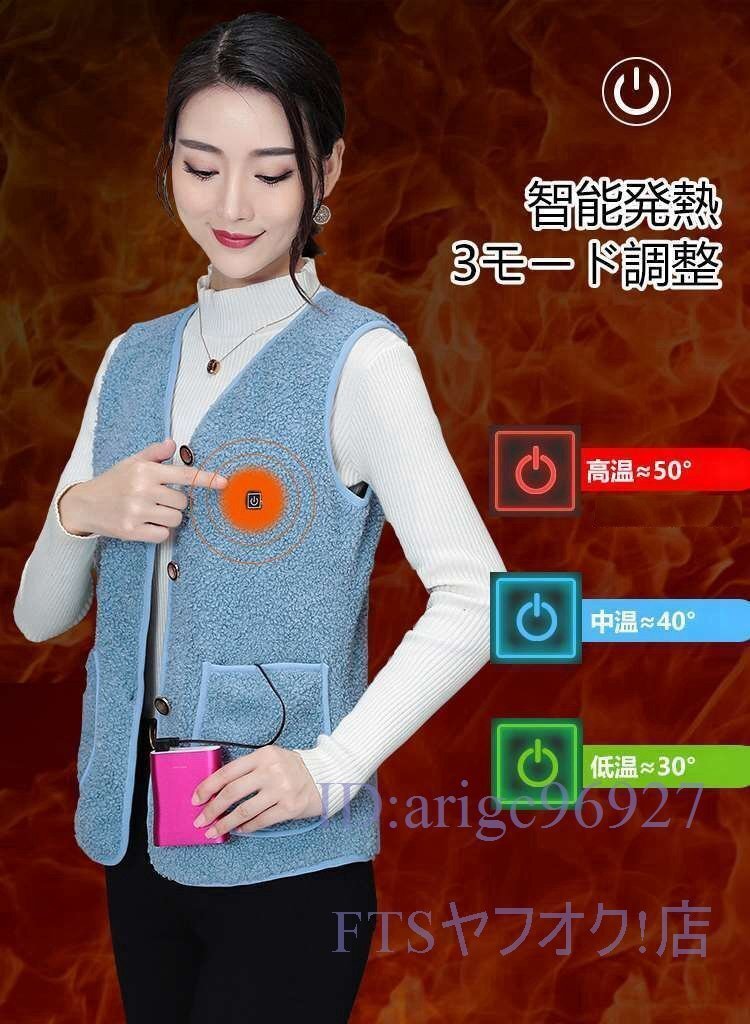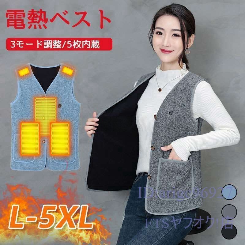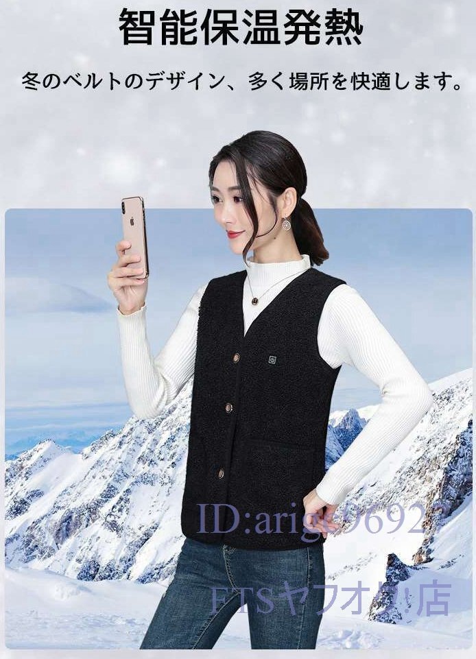 W973☆電熱ベスト 加熱ベスト 電熱ジャケット 防寒対策 USB充電式 女性 防寒ベスト 秋冬用 5つヒーター内蔵 3段階の温度制御 XL