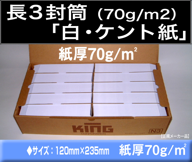長3封筒《紙厚70g/m2 白封筒 ケント紙 長形3号》1000枚 A4三ツ折 ホワイト【業務用】長型3号 キングコーポレーション