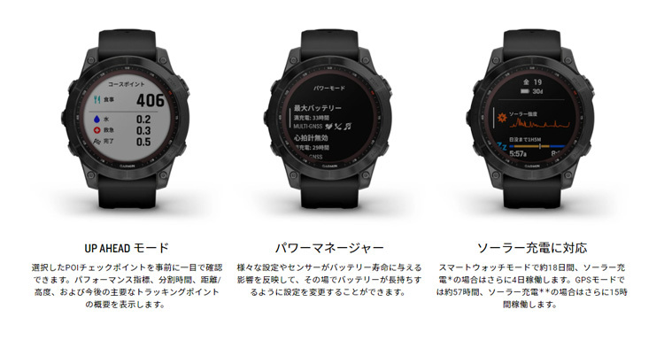 Garminが独自に開発した「パワーサファイアガラス」を搭載し、太陽光による充電機能と傷のつきにくさを両立。
