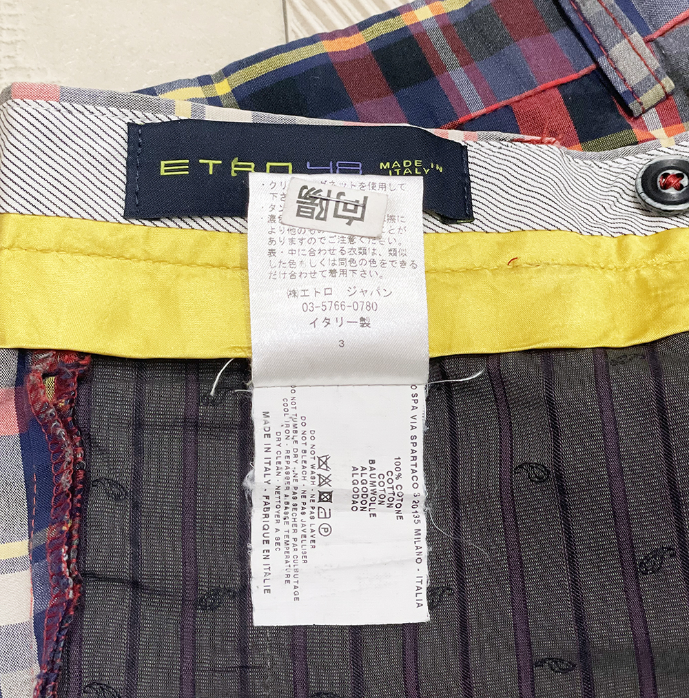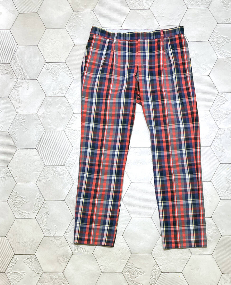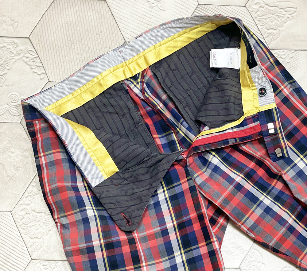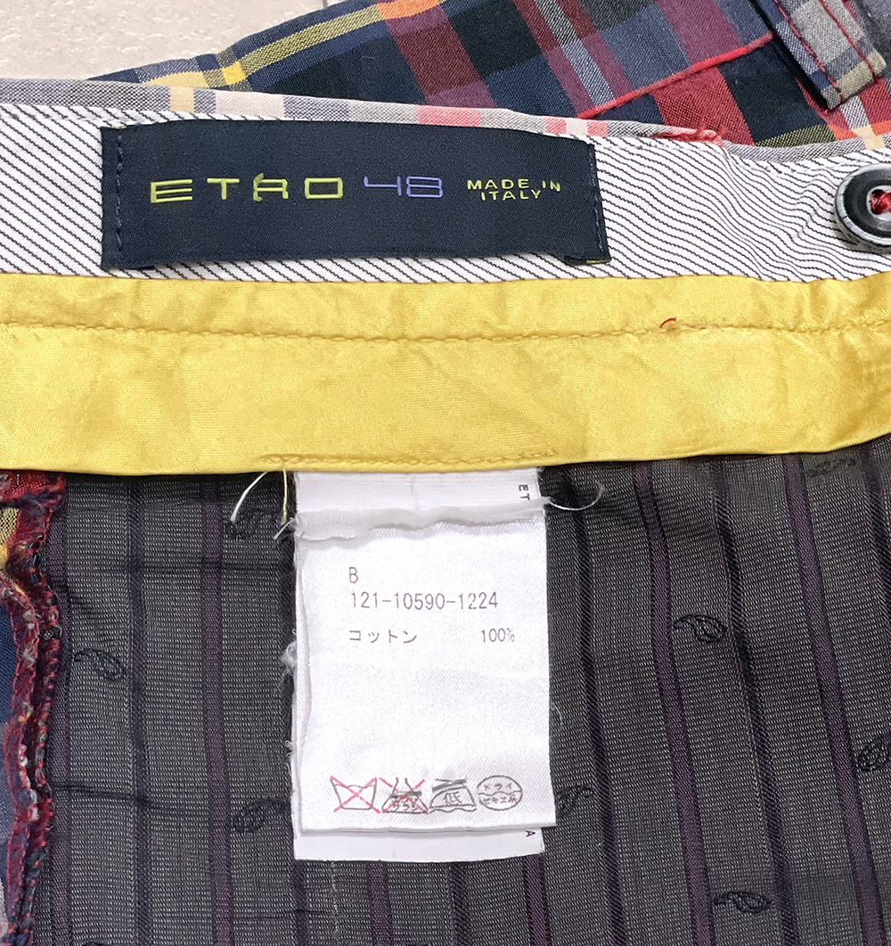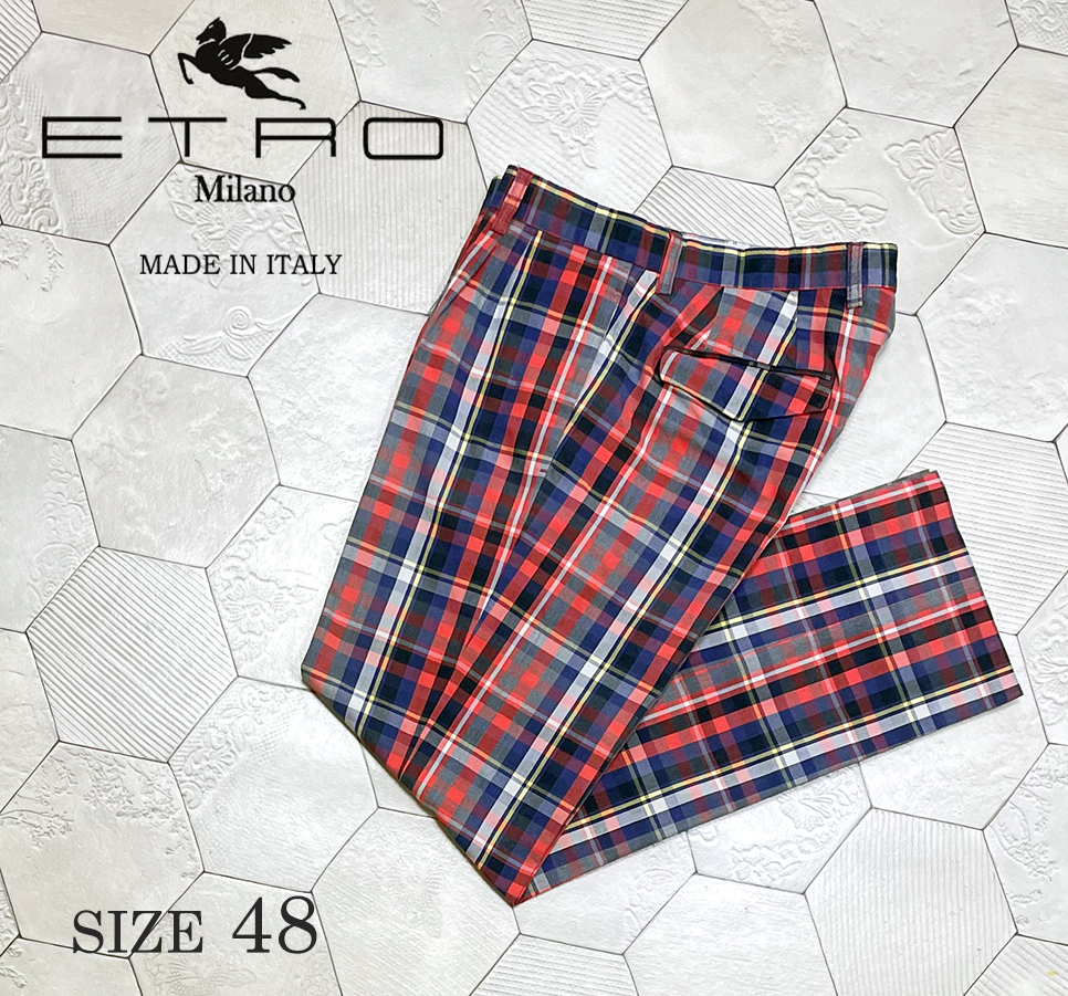 イタリア製 エトロ【ETRO】マドラスチェック柄 SLIM STRAIGHT コットンスラックスパンツ 48