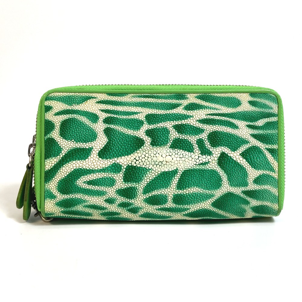no brand ノーブランド ステイングレイ Wジップ 長財布 レザー グリーン×アイボリー系 レディース【中古】