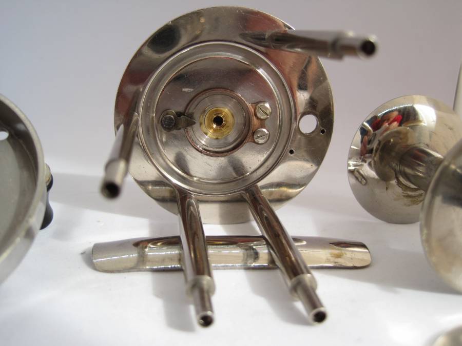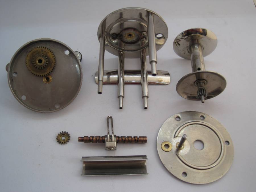 -めっきされたサイドプレート、スプール、ピラー、フート、ハンドル等、ほとんどのパーツは真鍮製ですので大変丈夫です。