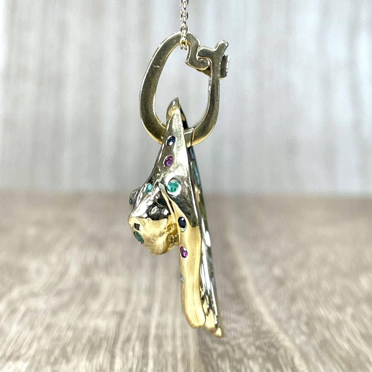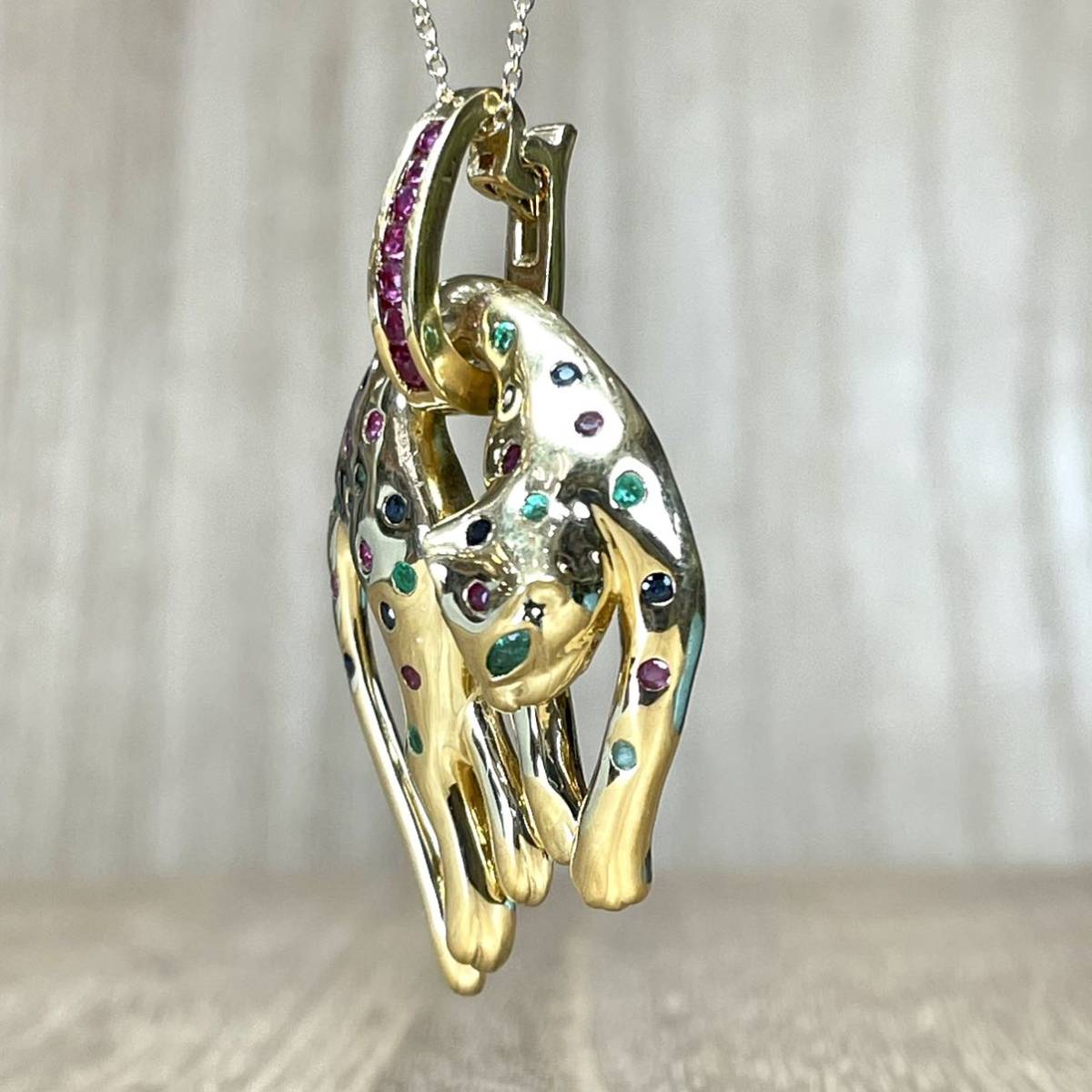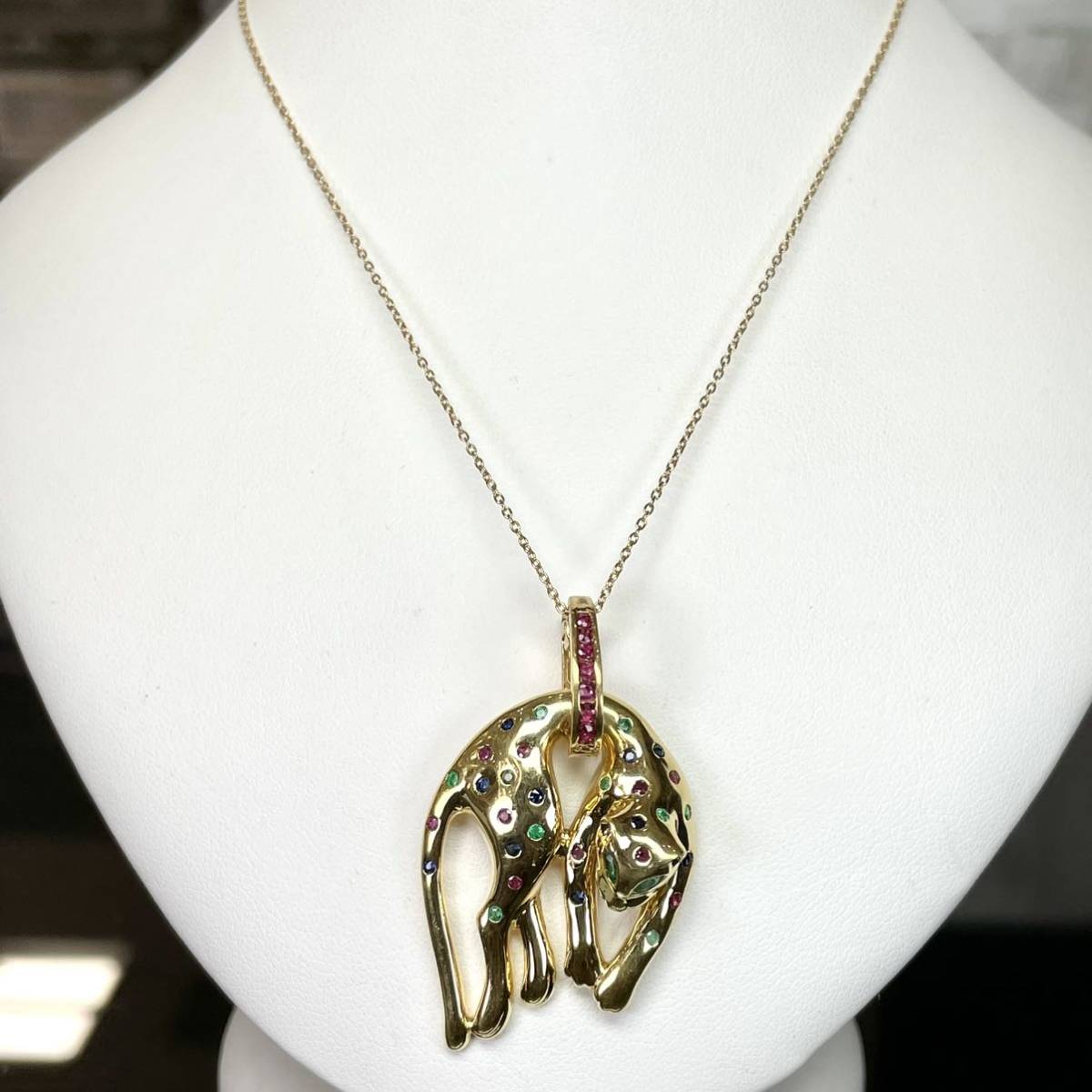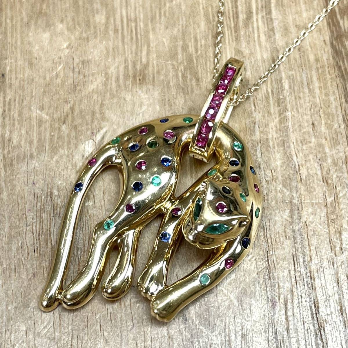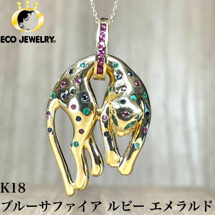 K18 ルビー サファイア エメラルド ヒョウ 豹 パンサー ペンダントトップ 11.02gのご紹介です。