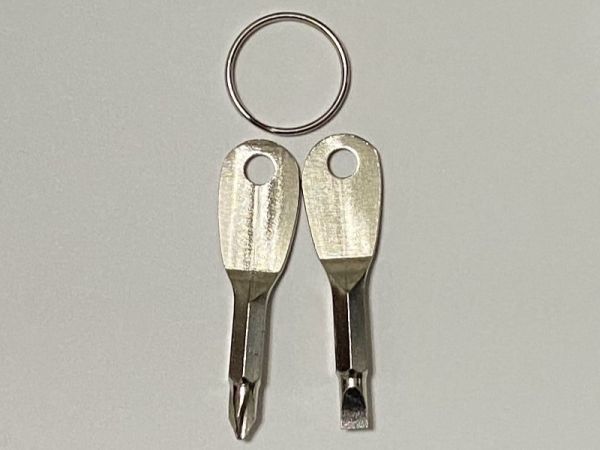 キードライバー 工具 キーホルダー キーリング シルバー プラスドライバー マイナスドライバー