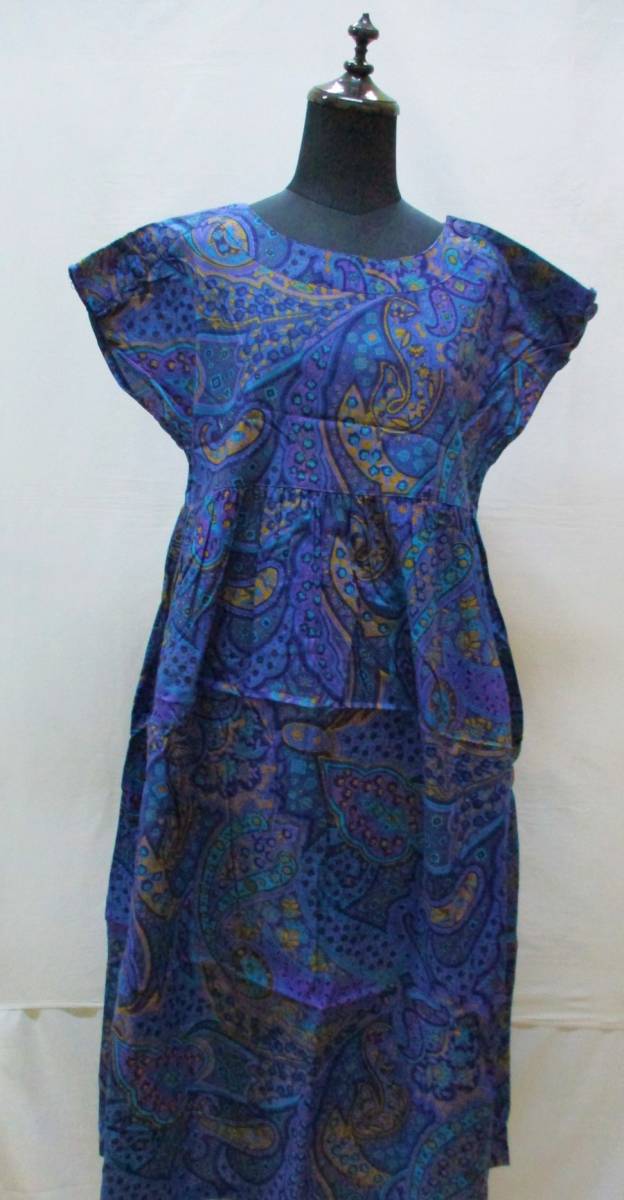 昭和レトロ SUNFEELD ワンピース 日本製 綿100% 夏物 エスニック柄 ペイズリー ブルー パープル