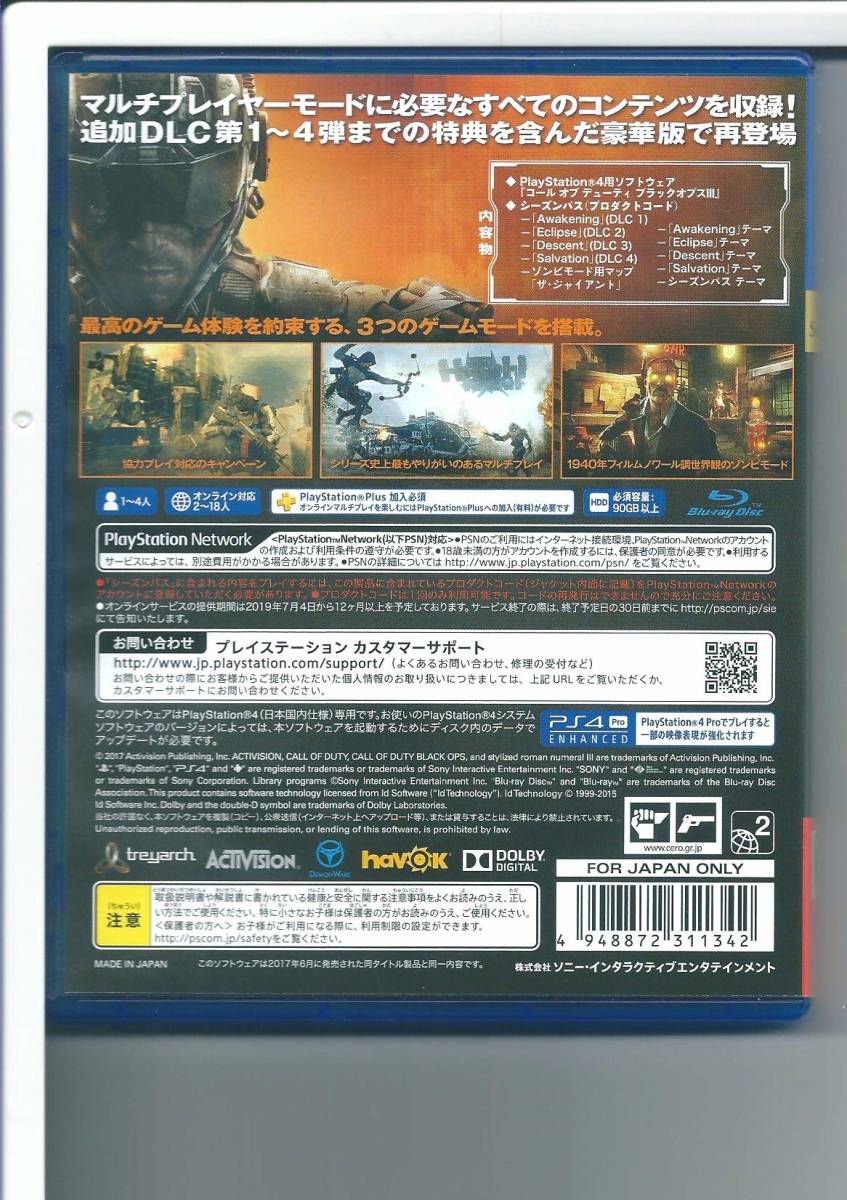 | ●JANコード4948872311342 t1! ☆PS4 コール オブ デューティ ブラックオプス III ゲーム オブ ザ イヤー エディション Value Selection 【CEROレーティング「Z」】 ●商品の状態 ソフトは使用感少なく状態良好ですが、ケースにスレ・イタミがあります。説明書がないのは仕様です。 ※付属ダウンロードコード・プロダクトコード類の保障はできません。予めご了承ください。 |
