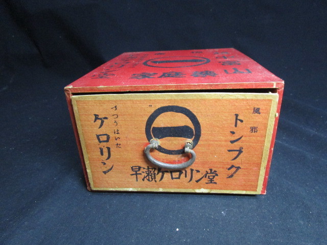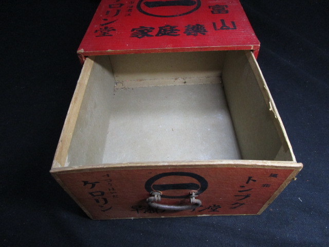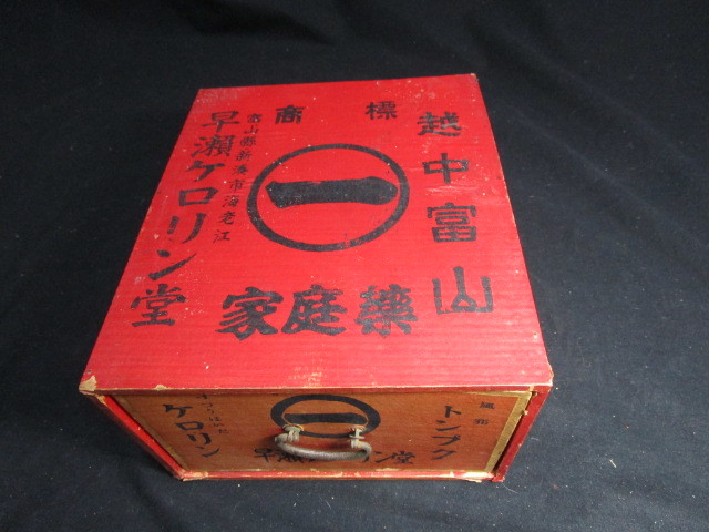 【置き薬】 江戸時代に始まった薬の配置販売は、富山売薬の営業形態となっています。 消費者の家庭に予め医薬品を預けておき半年ごとに巡回訪問を行って使用した分の代金を受け取り、さらに新しい品物を預けるシステムです。 薬事法では医薬品の小売を店頭販売と規定し消費者が転売することを禁じているため、「決まった消費者のもとで配置という形の陳列販売をしている」と解釈されています。 富山十万石の二代目藩主・前田正甫の「用を先に利を後にせよ」という精神から生まれた「おきぐすりの先用後利」販売システムは、当時としてはかなり画期的な商法でした。 山河を越えて行く道中には山賊や盗賊の危険もあるでしょう。 宿泊費や交通費も馬鹿になりません。 しかも、たどり着いた旅先で必ずくすりを買ってくれるという保証もありません。 言葉や習慣の違いも当然あります。 利益を得るために長い年月がかかり、資金の回転も困難です。 こうした悪条件だらけの中、不安や迷いを断ち切ってスタートしたのですから、しっかりとした「商いの理念」がバックボーンとしてあったに違いありません。 江戸時代から第二次世界大戦の頃まで、薬売りたちは、そのほとんどが真宗信者で、懐や行李の底に小さな仏像を納めて、全国を歩き回っていました。 こうした商法は、顧客との間に「互いに利を分かち合う真心と感謝の結びつき」をより強固なものにし、人間関係が永続するという効果 をもたらしました。 【商品説明】 出品の商品は、大正後期~昭和初期に実際に使用されていた現物です。 経年の汚れ、スレなどございます。 画像でご判断いただき、現状でお願いいたします。 【大きさ】 約23.5cm×19.7cm×12.3cm ---------------------------------------------------------------------------- →珍品、レアな商品、なつかしい貴重な懐古品を中心に出品をしております。ぜひ、他の商品もご覧ください。←クリックください。 |
